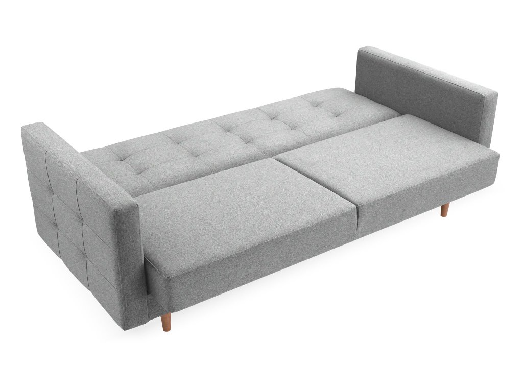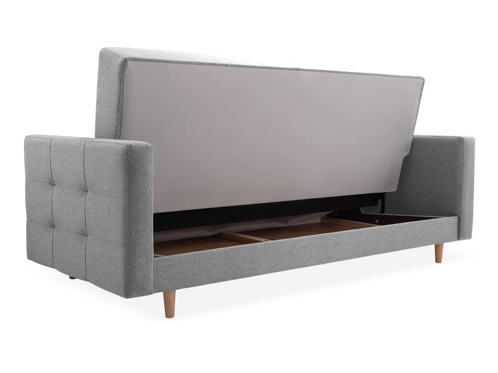 Sedadlo aj operadlo sú vybavené pružinami BONELL s hrúbkou drôtu 2,4 mm, doplnené o vysoko elastickú penu T30 s hrúbkou 3 cm – pre optimálnu podporu a pohodlie pri sedení aj spánku. Mechanizmus KLIK-KLAK umožňuje jednoduché a rýchle rozkladanie bez námahy. Drevené nohy dodávajú pohovke elegantný vzhľad a zároveň zabezpečujú pevné postavenie. Pohovka je čalúnená luxusnou zamatovou látkou Norn 07 v sivej farbe – je jemná, odolná voči žmolkovaniu a príjemná na dotyk. Drevené nohy v minimalistickom štýle dodávajú pohovke moderný vzhľad a výbornú stabilitu. Pohovku je možné zladiť s kreslom tej istej kolekcie.