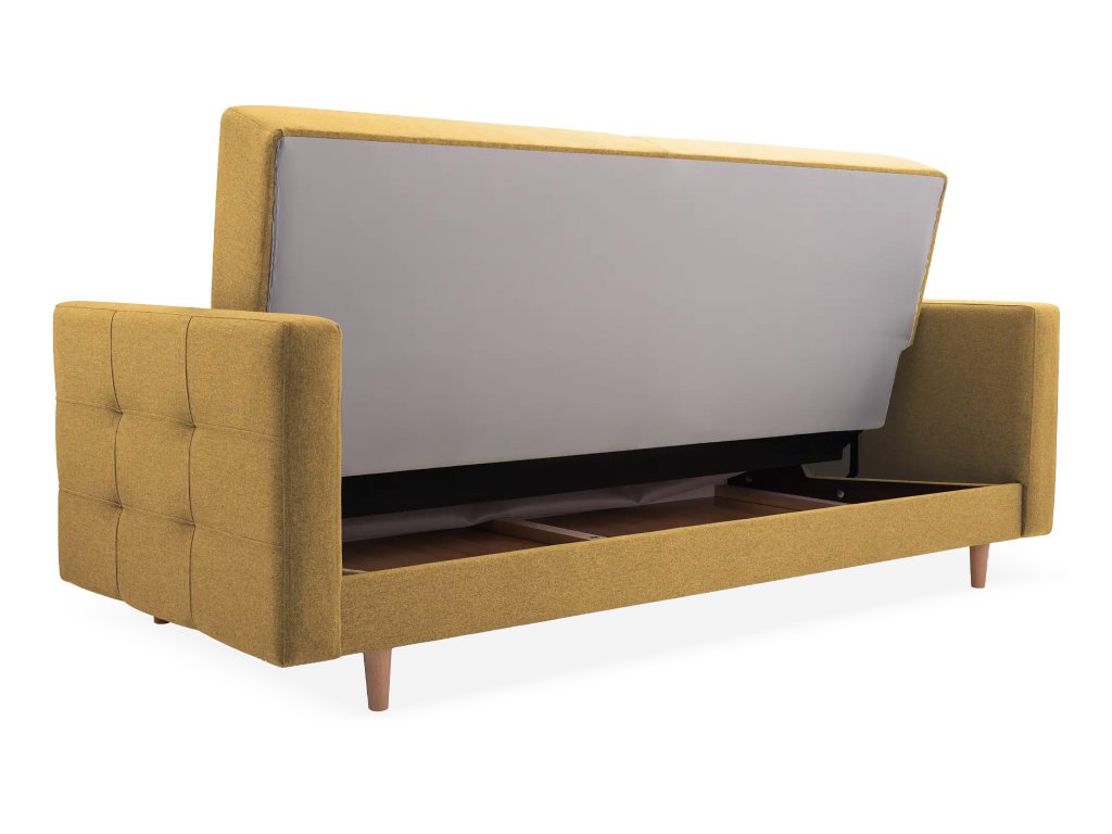 Žltá pohovka Godivo ponúka štýl aj funkčnosť. Pružiny BONELL a pena T30 zaručujú pohodlie, mechanizmus KLIK-KLAK uľahčuje rozkladanie. Ideálna na každodenné využitie. Drevené nohy dodávajú pohovke elegantný vzhľad a zároveň zabezpečujú pevné postavenie. Pohovka je čalúnená luxusnou zamatovou látkou Norn 65 v žltej farbe – je jemná, odolná voči žmolkovaniu a príjemná na dotyk. Drevené nohy v minimalistickom štýle dodávajú pohovke moderný vzhľad a výbornú stabilitu. Pohovku môžete jednoducho zladiť s kreslom Godivo.