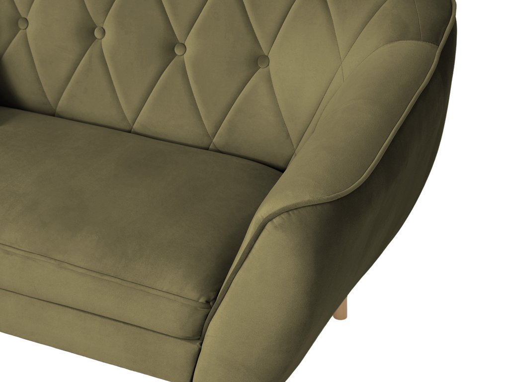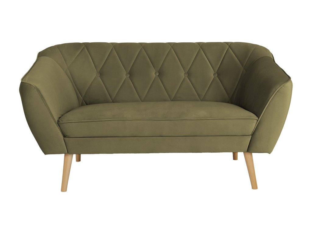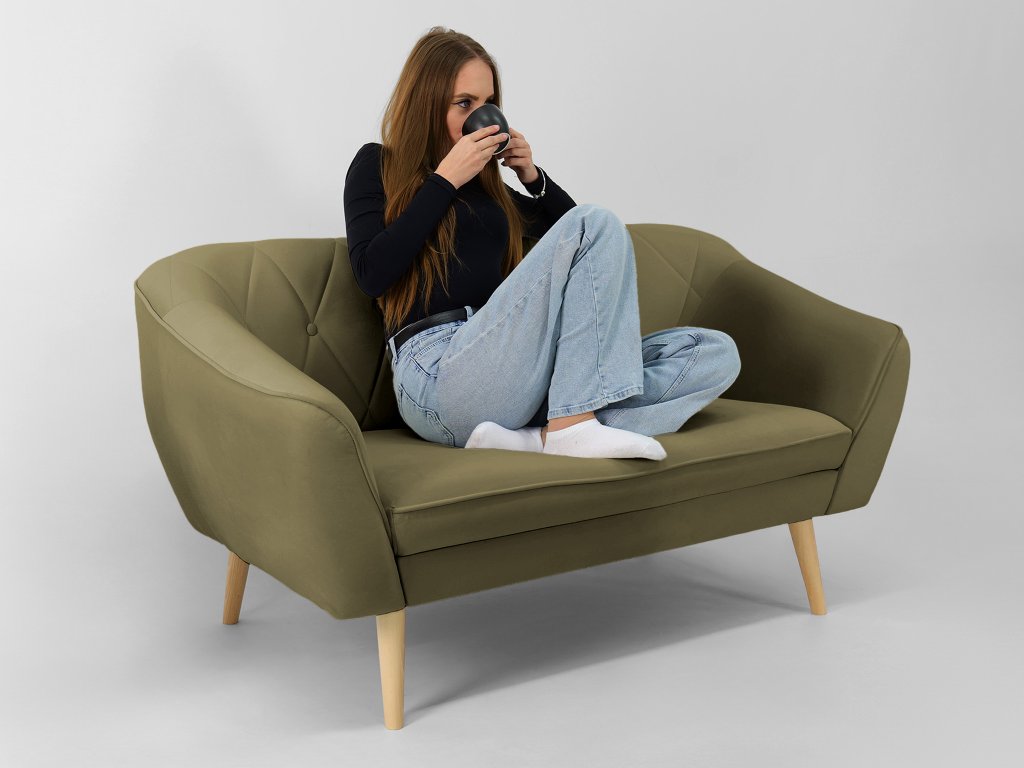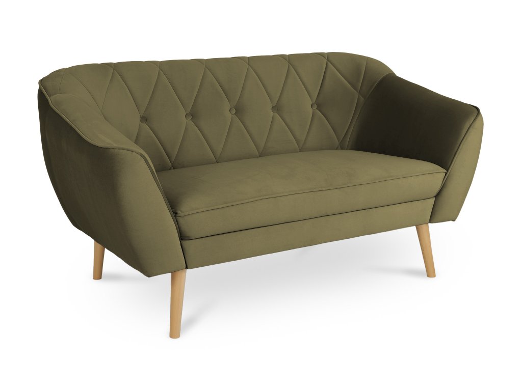 Elegantná a pohodlná, táto dvojmiestna pohovka Deana v škandinávskom dizajne, vyrobená z prvotriednych materiálov, skvele zapadne do rôznych druhov interiérov. Zamatový štýl pohovky dotvára látka Velur Royal, ktorá je príjemná a jemná na dotyk a zároveň je odolná voči žmolkovaniu. Celkový vzhľad dopĺňa prešívanie na operadle pohovky, tvorenom penou T25. Celá pohovka je na nožičkách z prírodného dreva. Sedadlo tvorí pena T30, ktorá zaručí bezproblémové, dlhé a hlavne pohodlné používanie pohovky. Sedacia časť má dĺžku 100 cm.