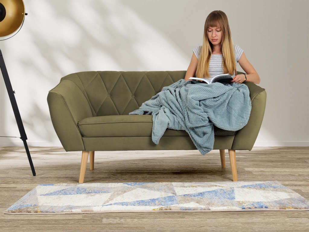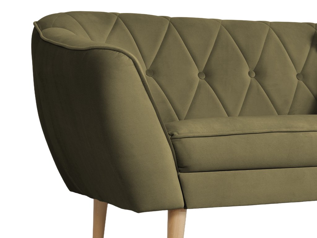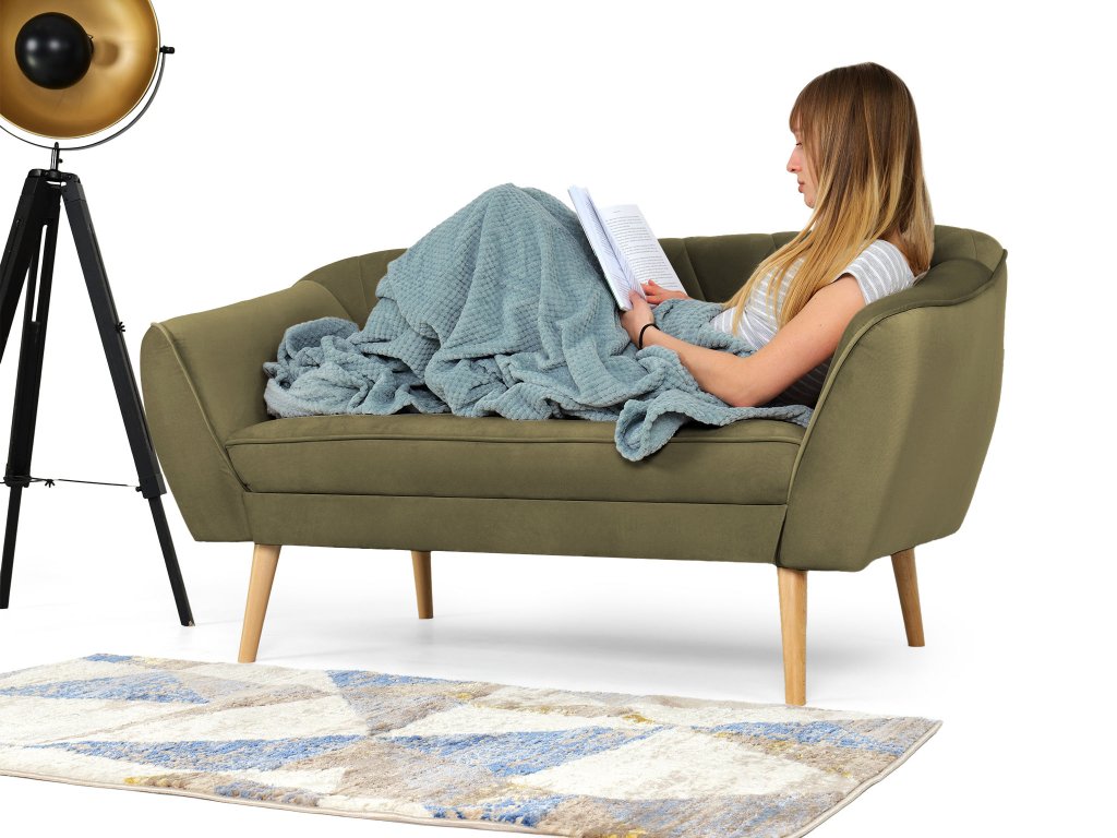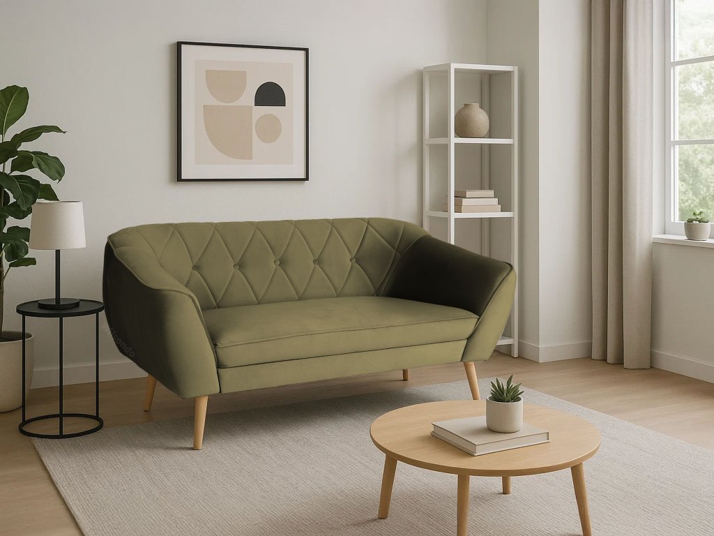 Elegantná a pohodlná, táto dvojmiestna pohovka Deana v škandinávskom dizajne, vyrobená z prvotriednych materiálov, skvele zapadne do rôznych druhov interiérov. Zamatový štýl pohovky dotvára látka Velur Royal, ktorá je príjemná a jemná na dotyk a zároveň je odolná voči žmolkovaniu. Celkový vzhľad dopĺňa prešívanie na operadle pohovky, tvorenom penou T25. Celá pohovka je na nožičkách z prírodného dreva. Sedadlo tvorí pena T30, ktorá zaručí bezproblémové, dlhé a hlavne pohodlné používanie pohovky. Sedacia časť má dĺžku 100 cm.