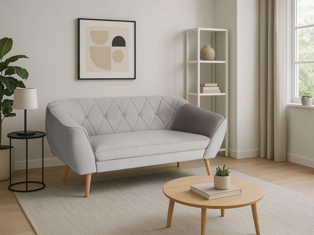 Pohovka Deana v škandinávskom štýle, vhodná pre dve osoby, ktorá sa hodí do každého interiéru a je vyrobená z kvalitných materiálov. Zamatový štýl pohovky dotvára látka Velur Royal, ktorá je príjemná a jemná na dotyk a zároveň je odolná voči žmolkovaniu. Celkový vzhľad dopĺňa prešívanie na operadle pohovky, tvorenom penou T25. Celá pohovka je na nožičkách z prírodného dreva. Sedadlo tvorí pena T30, ktorá zaručí bezproblémové, dlhé a hlavne pohodlné používanie pohovky. Sedacia časť má dĺžku 100 cm.