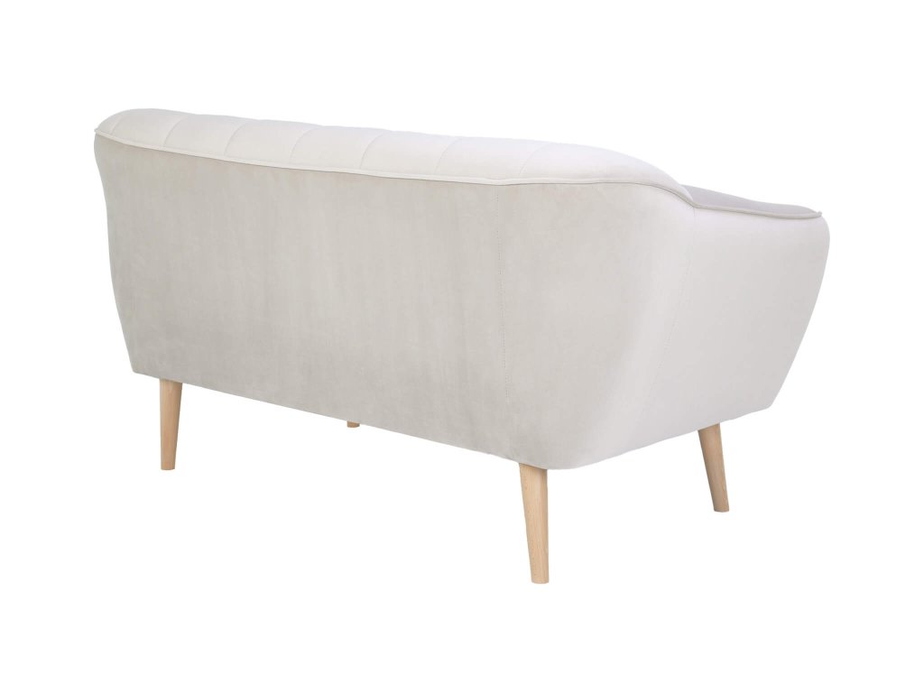 Pohovka stojí na elegantných nožičkách zo svetlého prírodného dreva, ktoré dodávajú nábytku prírodný a vzdušný charakter. Operadlo a opierky sú vyplnené kvalitnou penou s tvrdosťou T25, čo zabezpečuje optimálnu oporu a pohodlie. Sedadlo je vyrobené z peny s tvrdosťou T30, ktorá je ešte o niečo tuhšia, aby ste si mohli vychutnať pohodlie aj pri dlhšom sedení. Dizajn operadla je ozdobený vertikálnym prešívaním, čo pridáva pohovke na elegancii a dodáva jej sofistikovaný vzhľad.