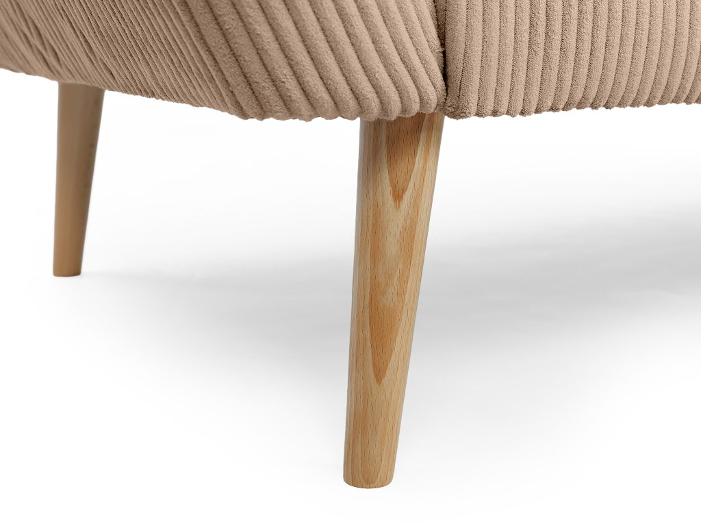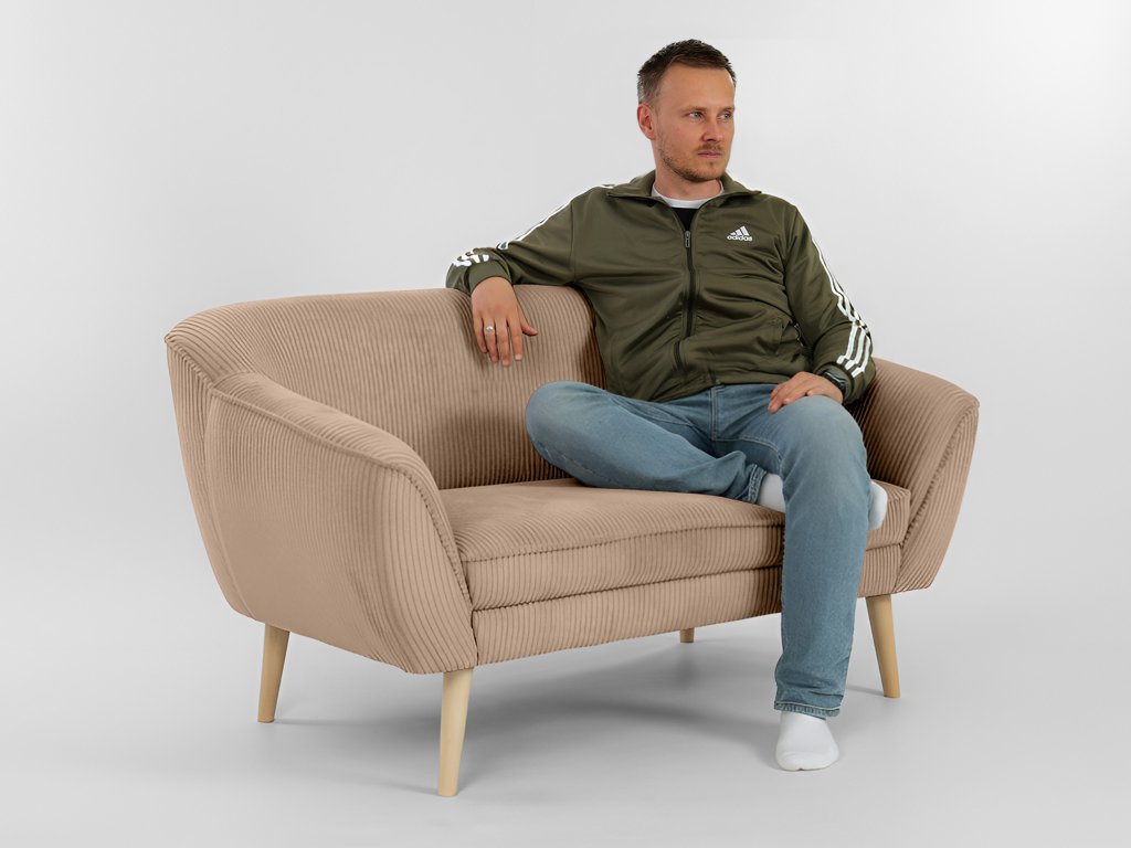 Dvojmiestna sedačka II Dory sa stane atraktívnym doplnkom každej izby, či už ju umiestnite do hosťovskej izby, pracovne alebo do obývačky, kde vytvorí pohodlné miesto na oddych po dlhom dni. Jej povrch tvorí kvalitná tkanina Lincoln s jemnou a hladkou štruktúrou, ktorá je príjemná na dotyk a pôsobí luxusne. Svetlohnedý odtieň čalúnenia sa ľahko kombinuje s doplnkami v rôznych farbách. Pohodlie pri sedení zabezpečuje výplň sedacej časti z mäkkej peny T30, ktorá odoláva deformáciám a opierka vystužená hustejšou penou T25 poskytuje spoľahlivú oporu chrbtici počas odpočinku. Celkový dizajn sedačky dotvárajú pevné nožičky z dreva v prírodnej svetlej farbe.