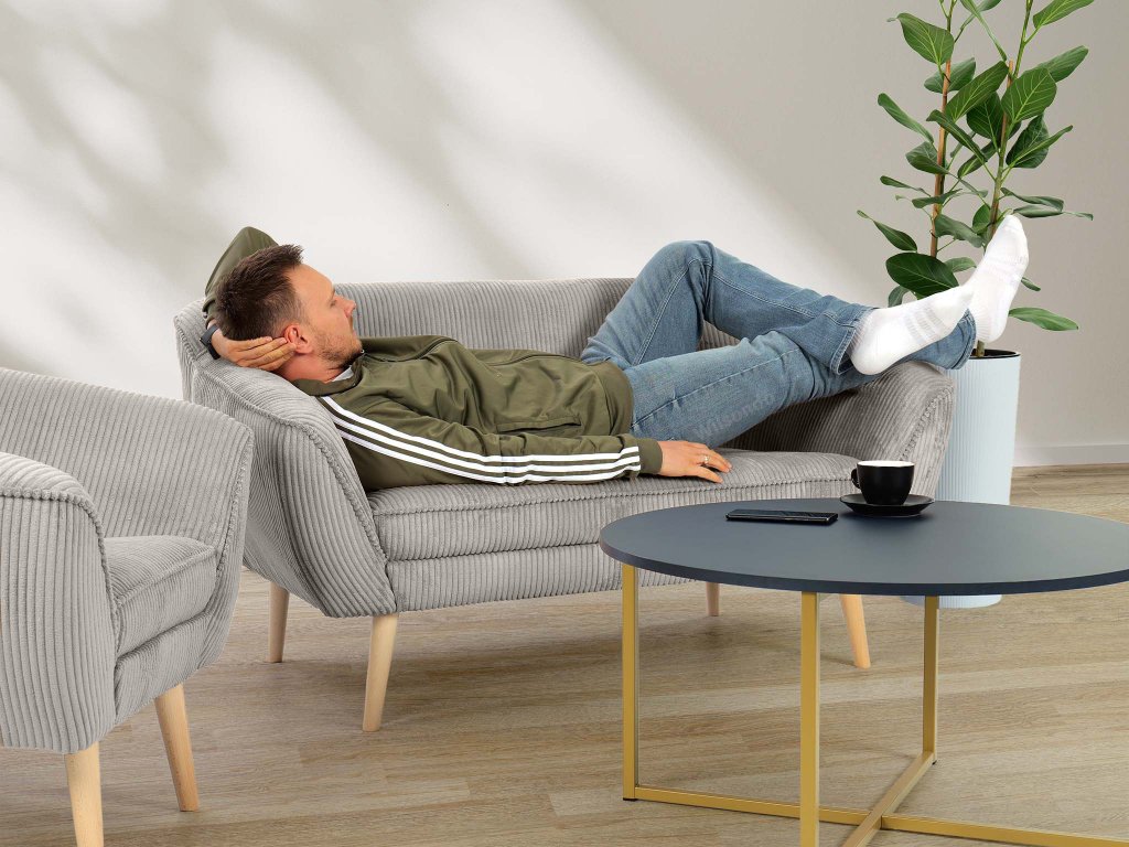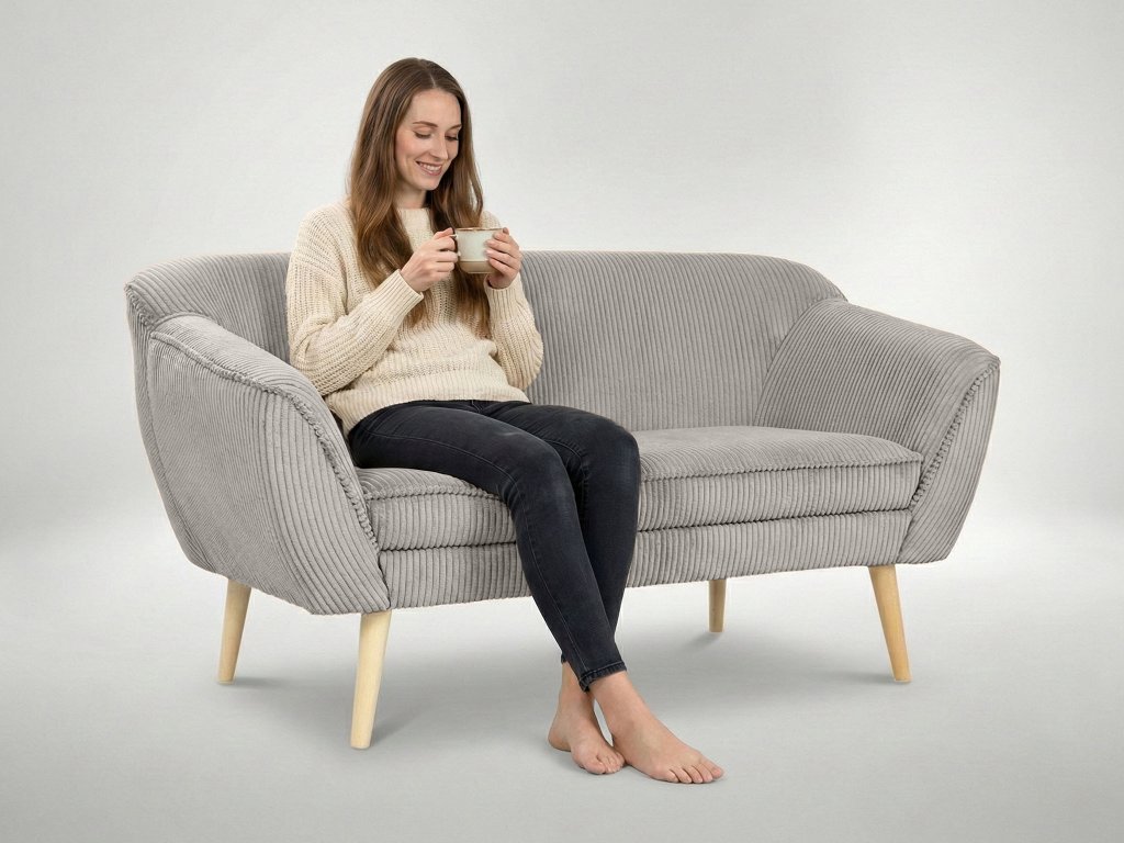 Vďaka svojim kompaktným rozmerom je táto dvoj pohovka ideálnym riešením do obývačiek, študentských izieb alebo elegantných pracovní. Je to perfektná pohovka pre dvoch, ktorá poskytuje dostatok miesta na spoločné rozhovory alebo nerušený večerný odpočinok. Svetlosivý odtieň v kombinácii s textúrou menčestru sa skvele hodí k neutrálnym, pastelovým ale aj výrazným farbám, čím v interiéri vytvára pocit priestrannosti a nadčasovosti.