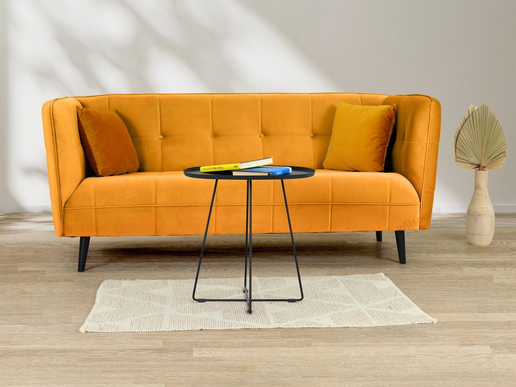 Trojmiestna pohovka Castello je obľúbeným kúskom do obývačky, ktorý spája štýl a pohodlie. Kvalitné čalúnenie, prešívané operadlá a mäkká zamatová látka v oranžovej farbe vytvárajú ideálne miesto na relax. Elegantné čierne nohy dodávajú pohovke moderný výraz, ktorý vynikne v každom interiéri. Či už na sedenie s hosťami alebo na popoludňajší oddych, táto pohovka si vás získa už na prvý pohľad. Pohovka v kombinácií s moderným nábytkom vytvorí v interiéri originálny vzhľad.