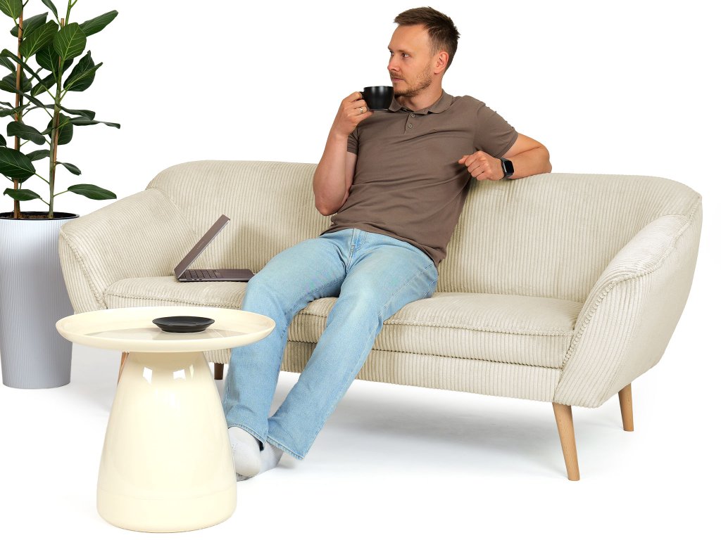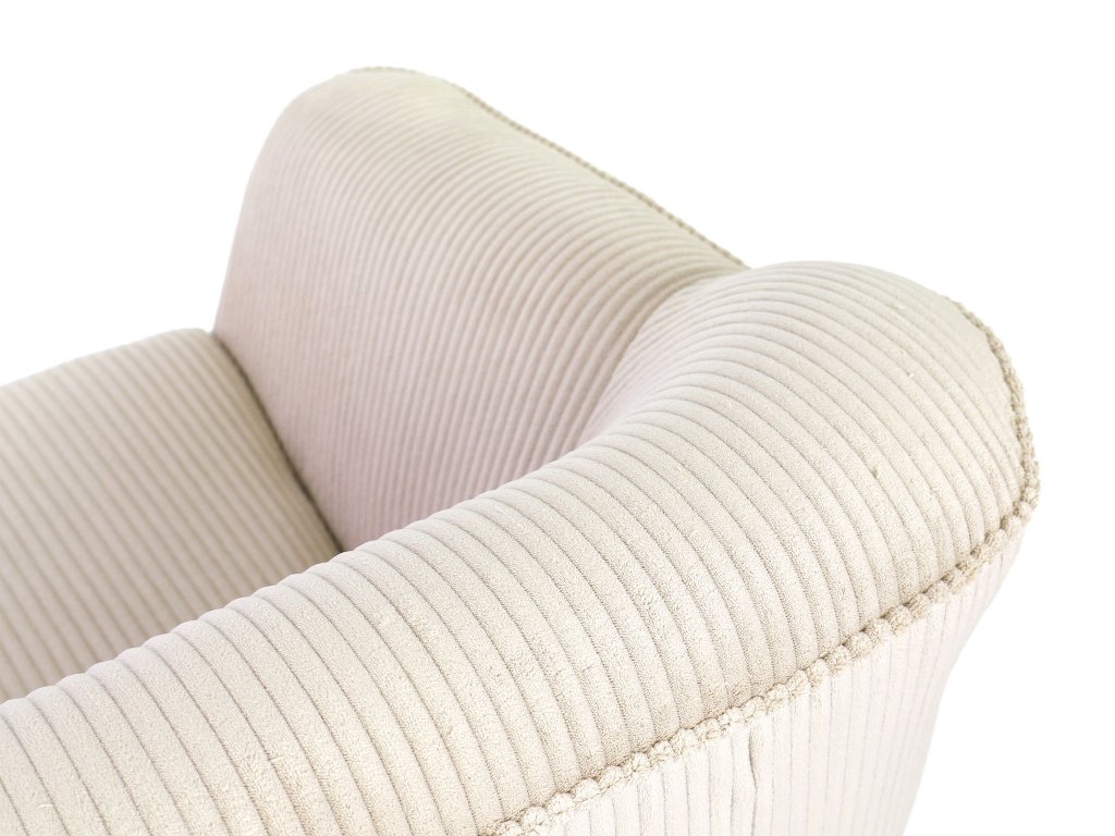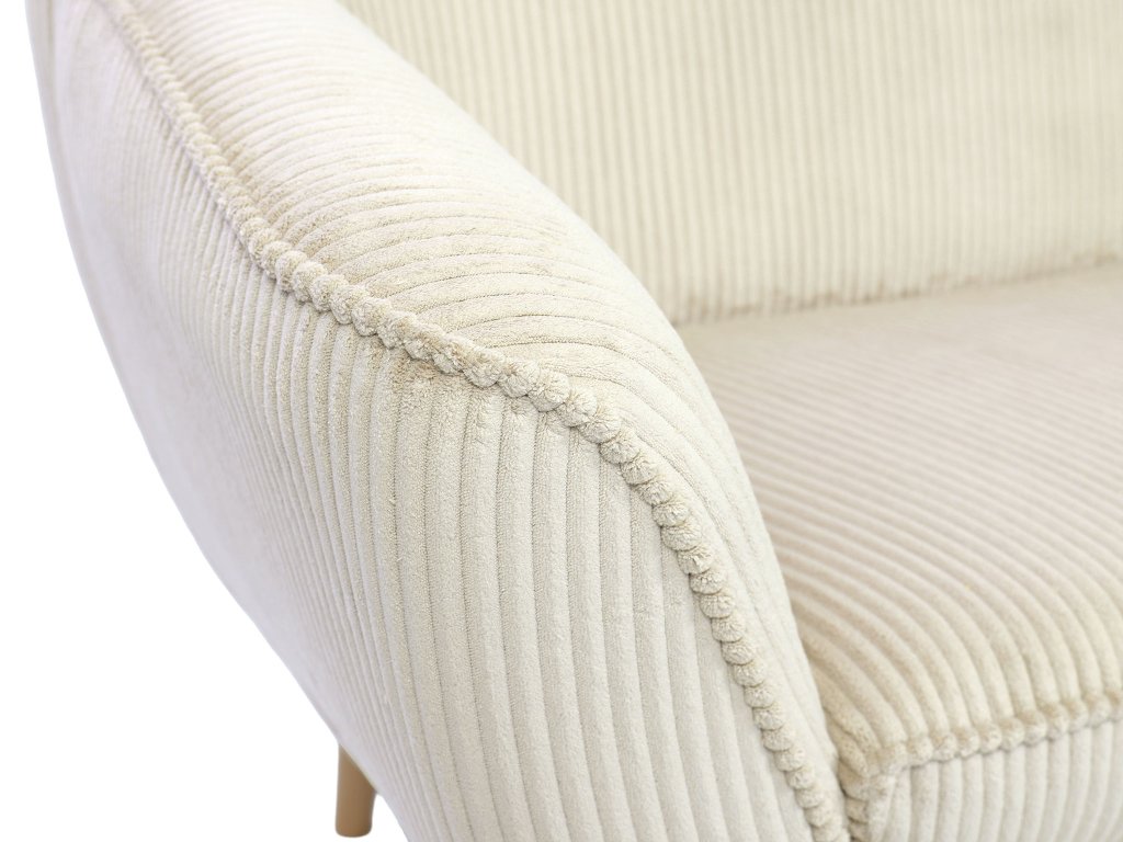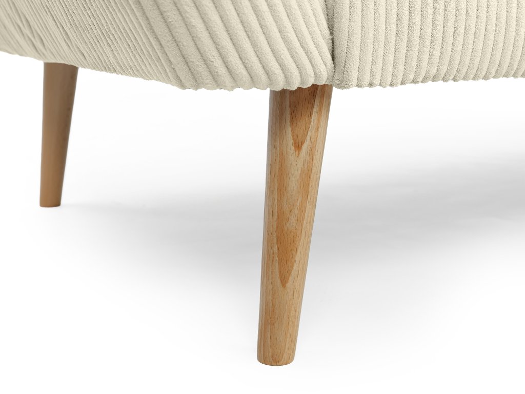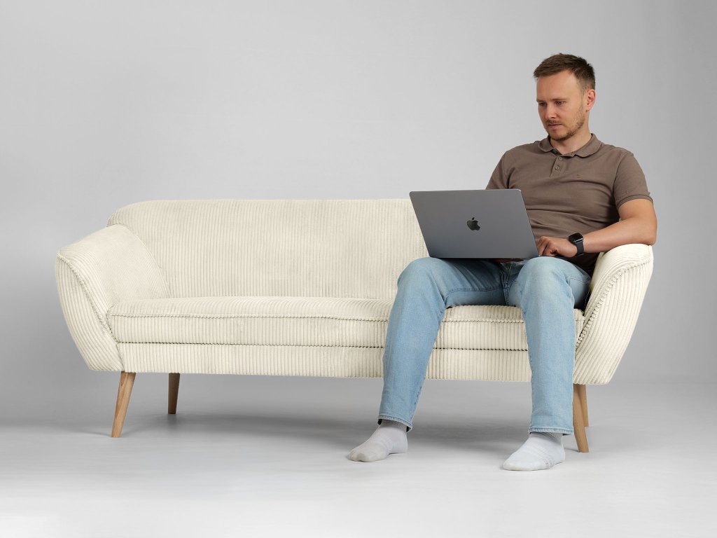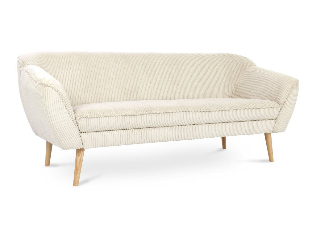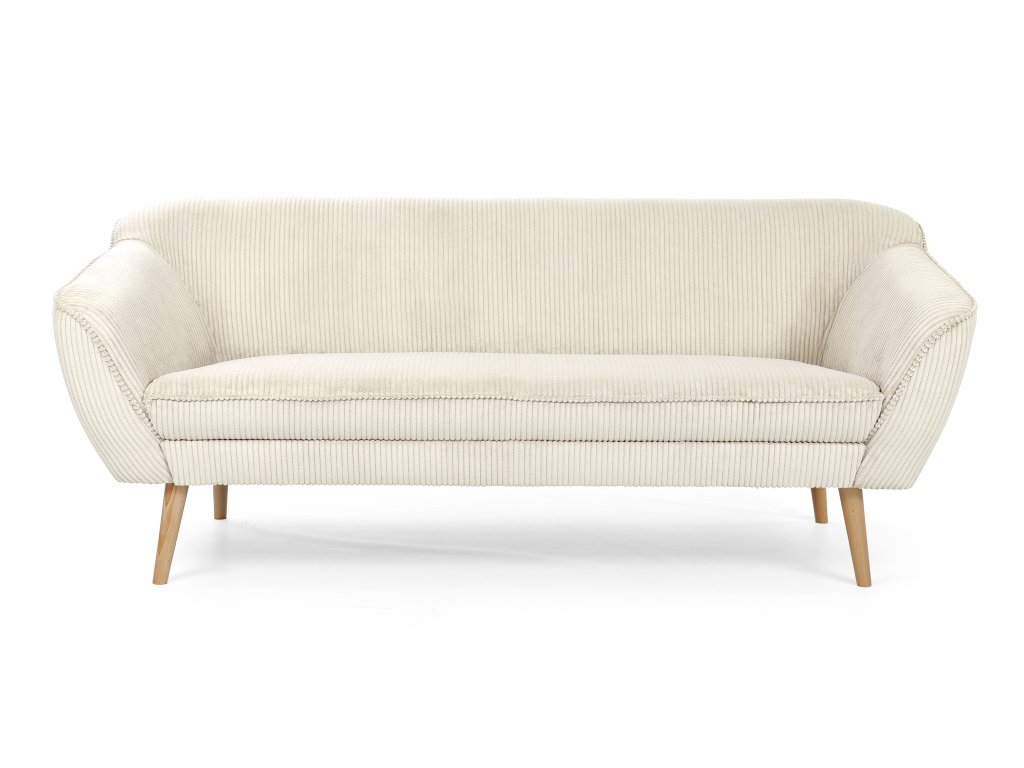 Moderná pohovka Dory pre tri osoby vás už na prvý pohľad očarí zaujímavým čalúnením a elegantným dizajnom. Trojmiestna sedačka je vyrobená z kvalitných materiálov. Operadlo pohovky je vyrobené z peny T25. Sedadlo tvorí pena T30, ktorá zaručí bezproblémové a hlavne pohodlné používanie pohovky. Táto moderná pohovka má nožičky zo svetlého prírodného dreva. Čalúnenie je z odolnej látky Lincoln, ktorá má zaujímavú prúžkovanú štruktúru. Vďaka béžovo-krémovej farbe sa táto pohovka hodí do každej modernej obývačky.