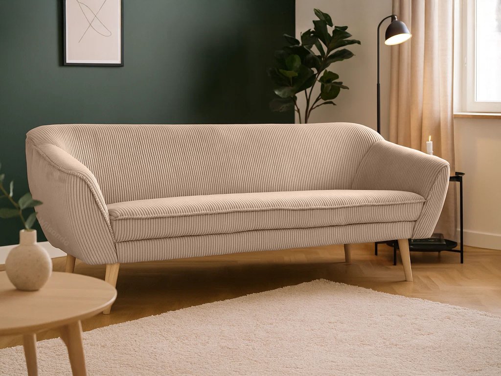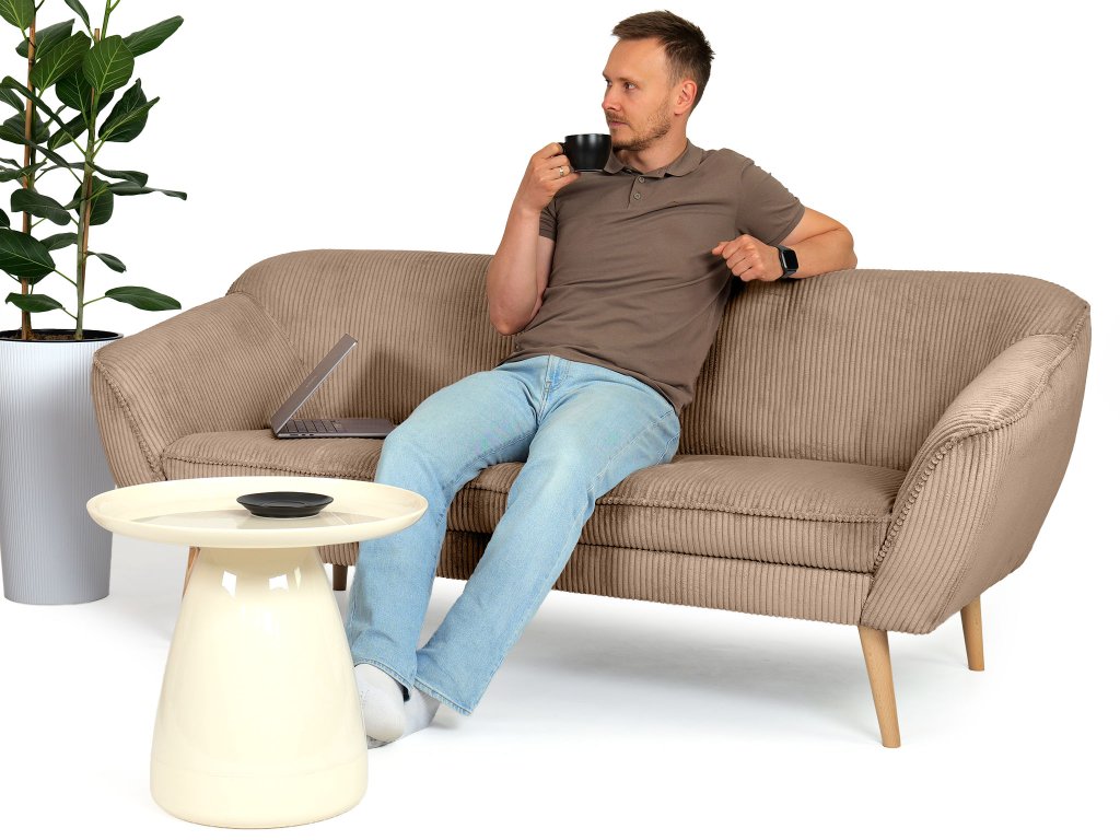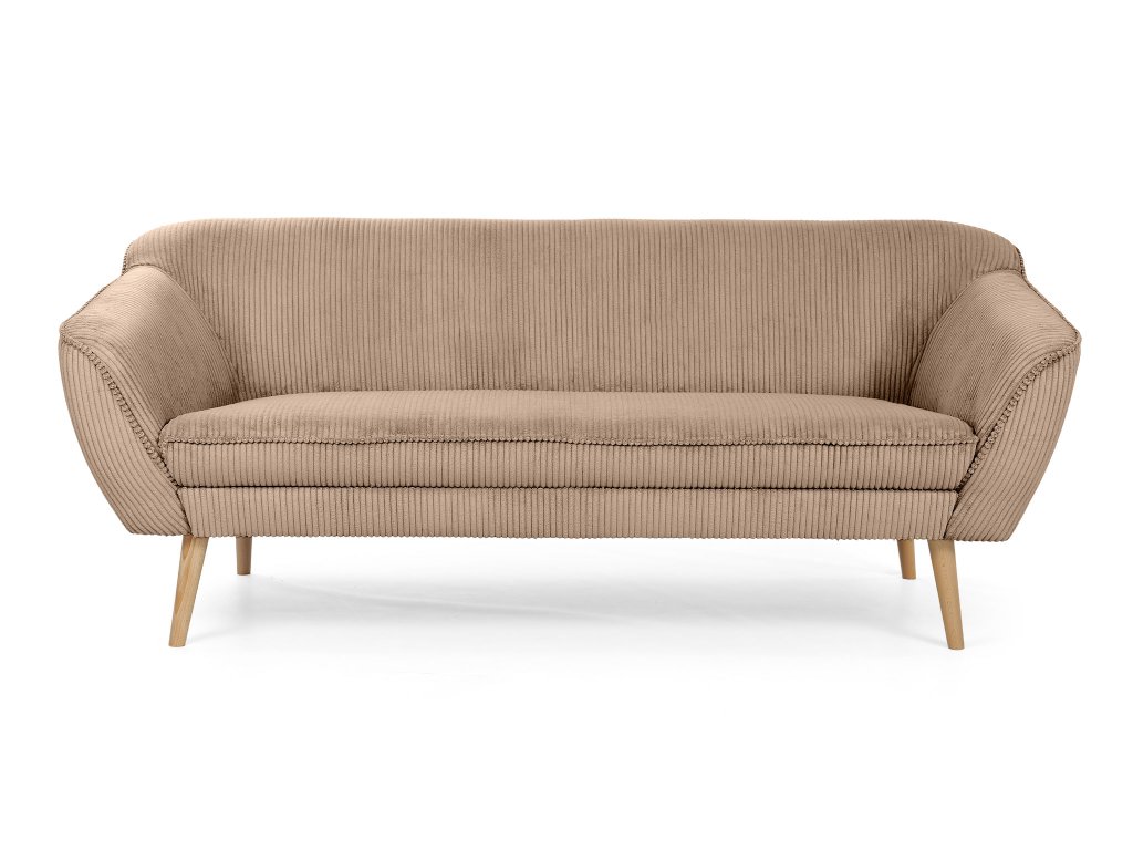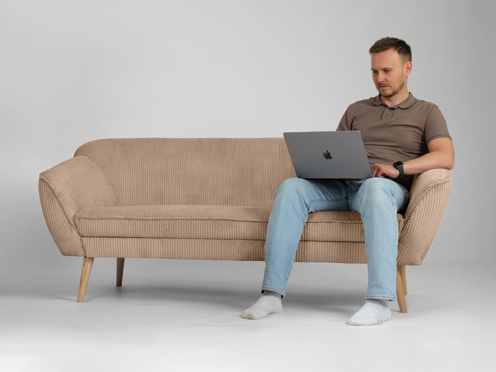 Ak hľadáte pohodlné a zároveň moderné miesto na sedenie, pohovka III Dory vás zaručene nesklame. Táto trojmiestna pohovka v jemnej svetlohnedej farbe sa vďaka decentnej štruktúre poťahu hodí k rôznym typom interiéru a miestnosti. Mäkké sedadlo tvorí kvalitná pena T30, ktorá sa postará o komfort pri každom sedení, zatiaľ čo opierka chrbta je vystužená penou T25, aby poskytla pevnú oporu počas oddychu. Poťahová látka Lincoln sa vyznačuje odolnosťou voči oderu a jej jemný prúžkovaný dizajn dodáva pohovke moderný vzhľad. Celú konštrukciu podopierajú nohy z masívneho dreva v svetlom odtieni, ktoré pôsobia prirodzene a zároveň zaručia stabilitu nábytku.