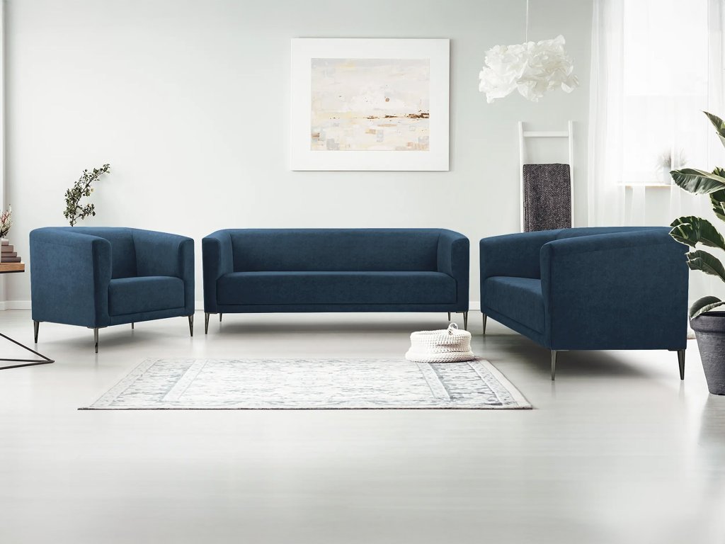Energia a optimizmus? S pohovkou Taledos v modrej farbe prinesiete do svojho domova svieži vánok. Táto dvojmiestna pohovka je výrazná a zároveň elegantná. Modrá farba je upokojujúca a stimulujúca zároveň, takže sa budete cítiť príjemne a uvoľnene. Pohovka do obývačky Taledos je ideálnym miestom pre stretnutia s priateľmi a rodinou. Môžete si na nej vychutnať spoločné chvíle v príjemnej atmosfére. Kvalitné materiály zaručujú vysoký komfort a dlhú životnosť. Rám je vyrobený z masívneho dreva a nábytkovej dosky. Sedák a operadlo obsahujú pružiny BONELL a elastickú penu T30. Výrazným prvkom pohovky sú vysoké kovové nožičky v lesklej čiernej farbe.