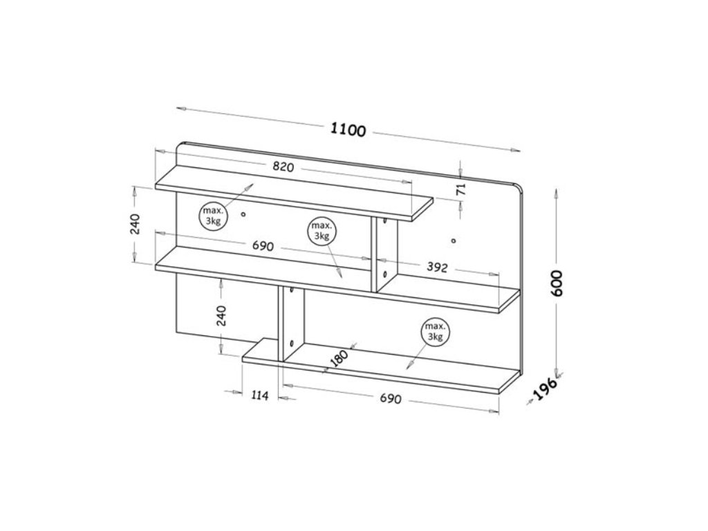 Nástennú policu Arca 12 tvoria tri otvorené police, pričom využijete ju na odkladanie rôznych maličkostí, dekorácií, fotografií či suvenírov.