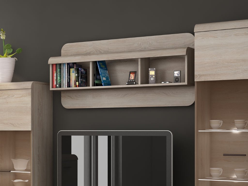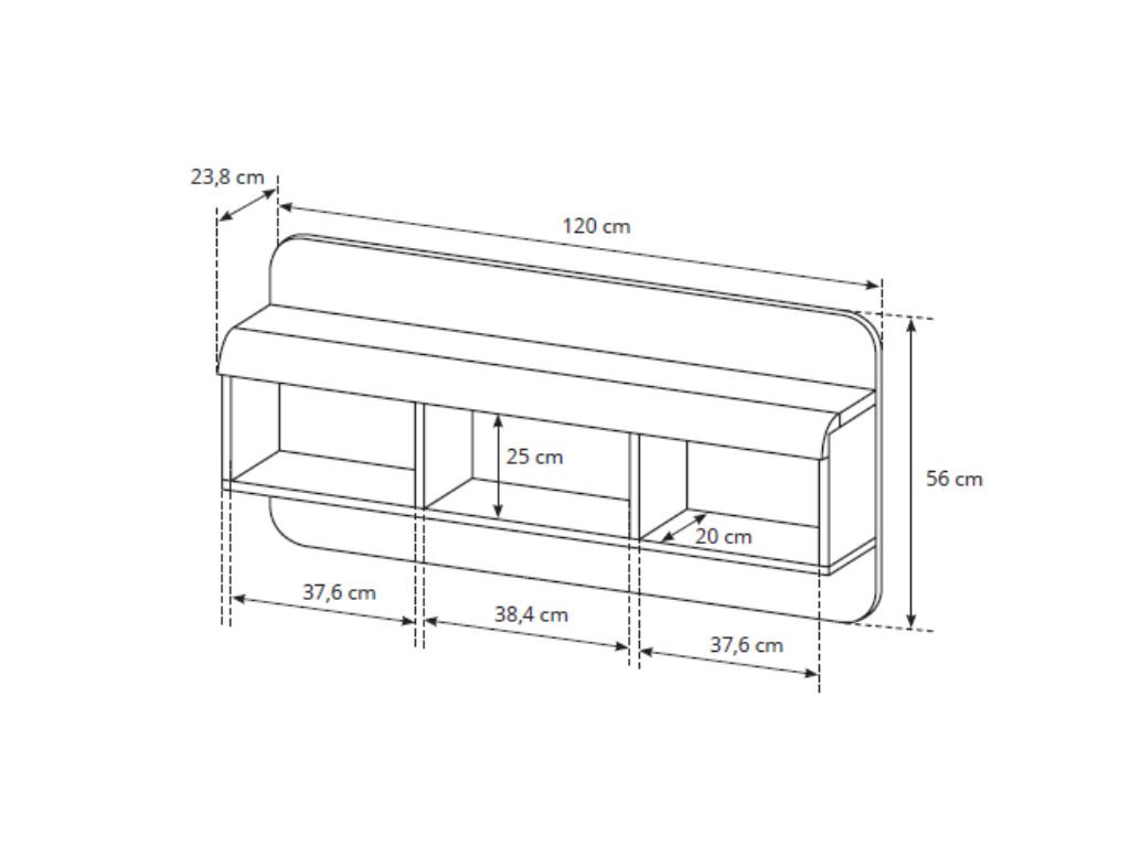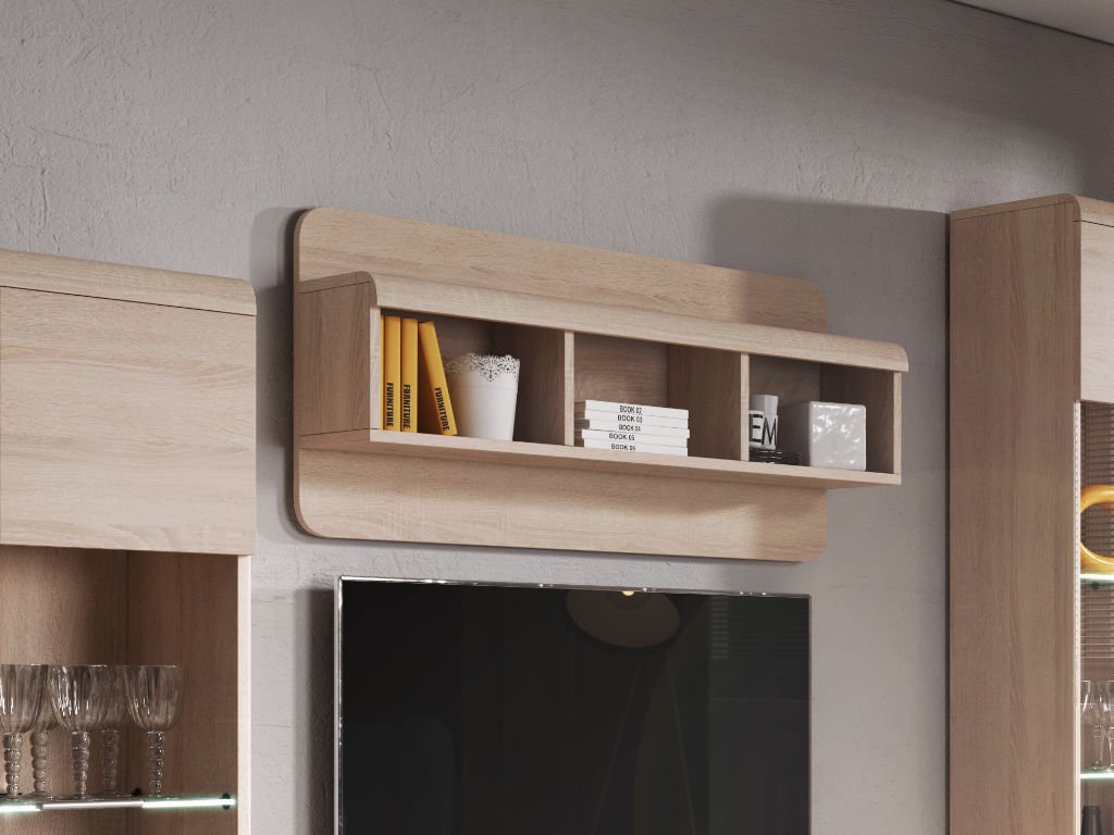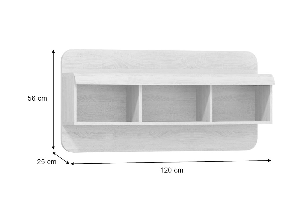 Nástenná polica LINK obsahuje tri praktické otvorené priehradky, ktoré môžete využiť na uskladnenie kníh, dekorácií alebo drobností. Vrchnú dosku poličky je možné použiť ako ďalší odkladací priestor, napríklad na rámiky, vázy či malé doplnky, ktoré dotvoria atmosféru vašej izby. Vďaka modernému dizajnu je polica ideálnym doplnkom k ďalšiemu nábytku z kolekcie LINK a zároveň praktickým riešením pre každý interiér.