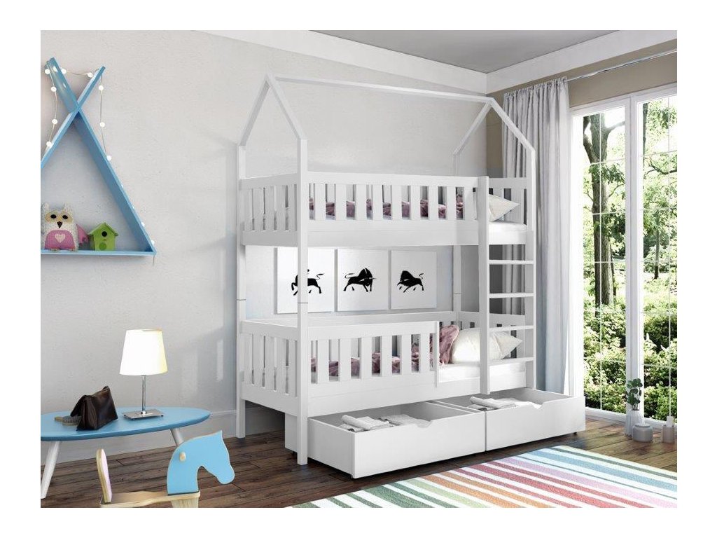 Poschodová posteľ s úložným priestorom Domček 90x200 - biela