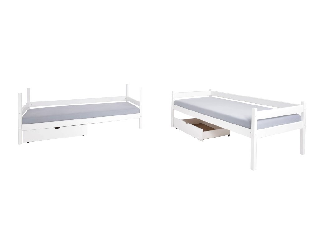Možnosť dokúpenia bariéry vo farbe postele na spodnú časť postele. Bariéra je odnímateľná. Súčasťou postele nie je matrac. Vyberte si zo širokej ponuky matracov 200x90 cm. Posteľ je dodávaná spolu s úložnými boxami.