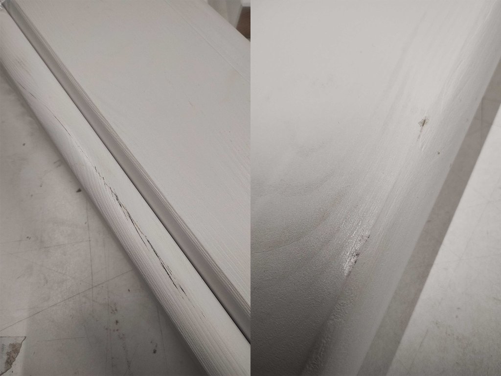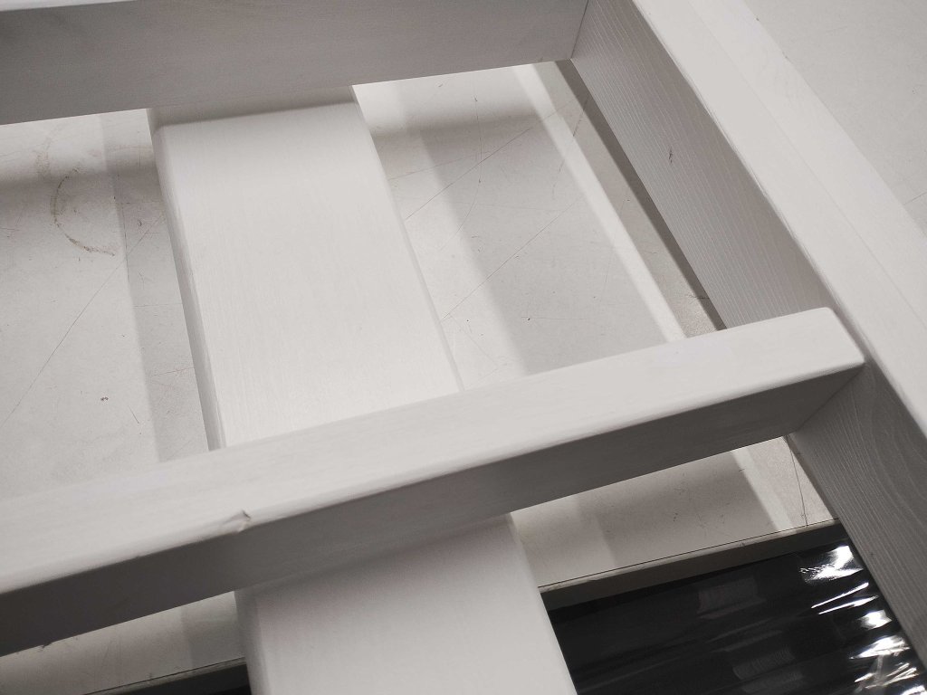 Posteľ bola montovaná a vykazuje mierne známky poškodenia, ktoré po zmontovaní nie sú viditeľné. Tieto drobné nedostatky sú zachytené na priložených fotografiách. Produkt sa nachádza v originál balení.