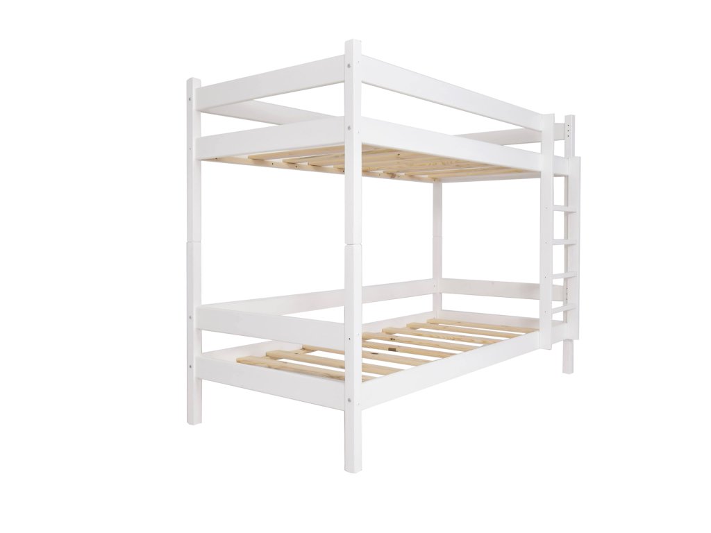 Masívna poschodová posteľ pre dospelých i deti vyrobená z prírodnej borovice. Posteľ je možné rozložiť na dve samostatné lôžka. Spoj postelí je riešený kolíkmi, a tak môžete posteľ veľmi rýchlo a jednoducho zložiť alebo rozložiť. Rebrík je obojstranný, a preto je posteľ univerzálna, a je možné ju postaviť ako ľavú alebo pravú. Posteľ je vhodnou voľbou pre každého, kto si potrpí na kvalitu, pretože je vyrobená z masívneho borovicového dreva, a preto vám bude slúžiť dlhé roky.