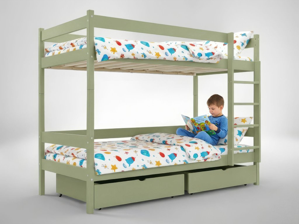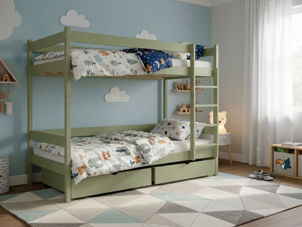 Olivové prevedenie pôsobí v miestnosti harmonicky a nenápadne, no zároveň dodáva nábytku osobitý charakter. Vďaka dvom plnohodnotným lôžkam dokáže posteľ ponúknuť pohodlie na malej ploche, čo ju robí ideálnou voľbou do menších detských alebo študentských izieb. Konštrukcia z masívnej borovice podporuje dlhú životnosť, zatiaľ čo možnosť oddeliť lôžka sa osvedčí pri prestavbe interiéru, raste detí alebo pri presťahovaní. Tento model predstavuje spoľahlivé, praktické a štýlovo pôsobiace riešenie pre každú domácnosť, ktorá uprednostňuje kvalitný masív a moderné farebné prevedenie.