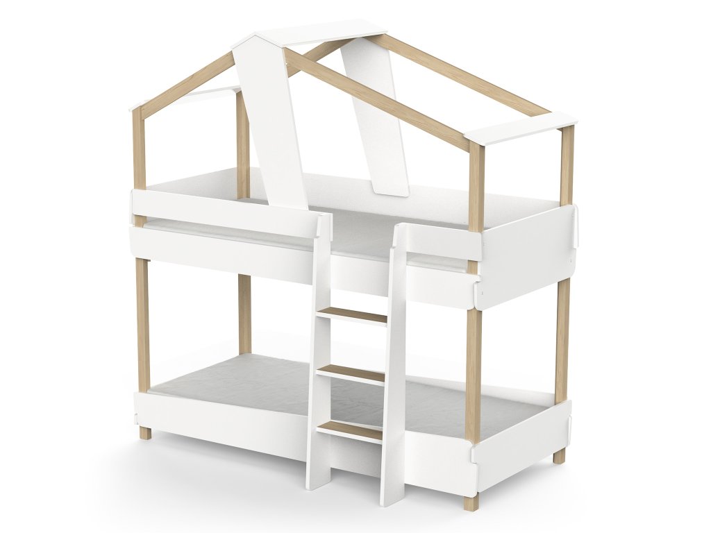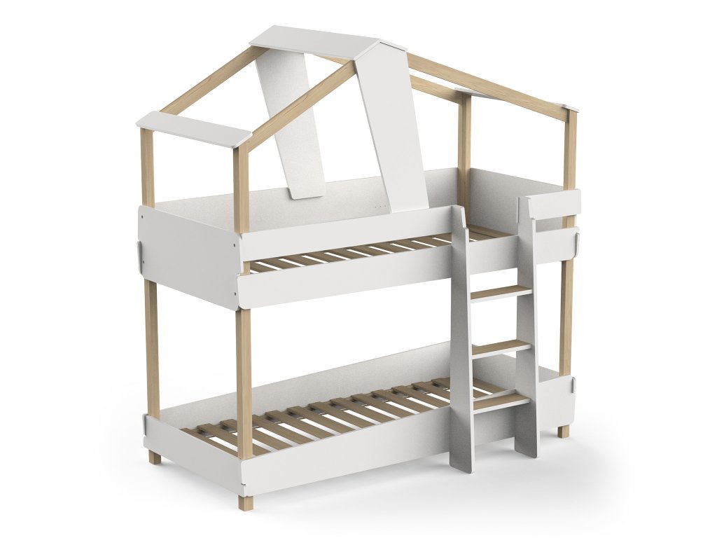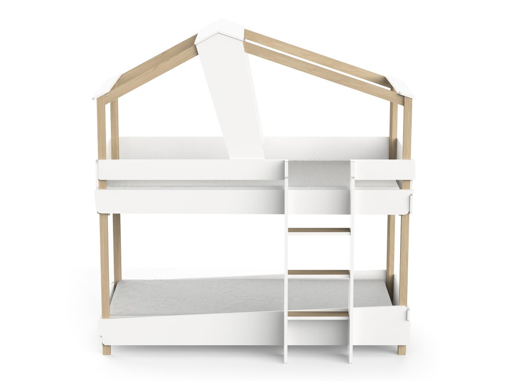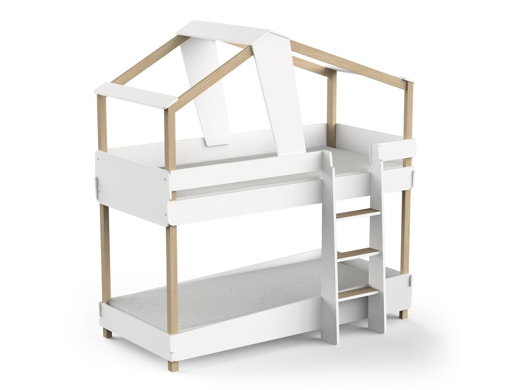 Poschodová posteľ Timber prinesie do detskej izby nádych rozprávkového sveta plného hier, fantázie a nezabudnuteľných dobrodružstiev. Jej dizajn v tvare domčeka okamžite premení izbu na útulné miesto, kde sa deti budú cítiť bezpečne a pohodlne, či už pri spánku, hraní alebo čítaní svojich obľúbených kníh. Táto praktická poschodová posteľ je ideálnym riešením pre súrodencov alebo na vytvorenie voľného priestoru v izbe. Disponuje pevným rebríkom, ktorý umožňuje jednoduchý a bezpečný prístup na horné lôžko. Stabilná konštrukcia je vyrobená z masívneho borovicového dreva v kombinácii s kvalitnou drevovláknitou doskou MDF, čo zaručuje jej odolnosť a dlhú životnosť. Povrch postele je ošetrený netoxickou farbou na vodnej báze, takže prispieva k zdravému ovzdušiu v miestnosti a je úplne bezpečný pre deti. Kombinácia elegantnej bielej farby s prírodným odtieňom dreva pôsobí jemne. Detská posteľ Timber sa stane krásnym doplnkom detskej izby, bez ohľadu na to, či je zariadená pre dievča alebo chlapca.