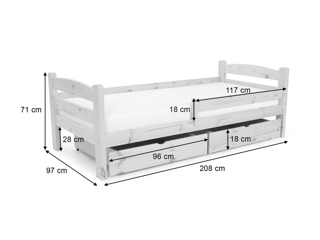 - Rozmer postele (šxvxh): 208 x 71 x 97 cm