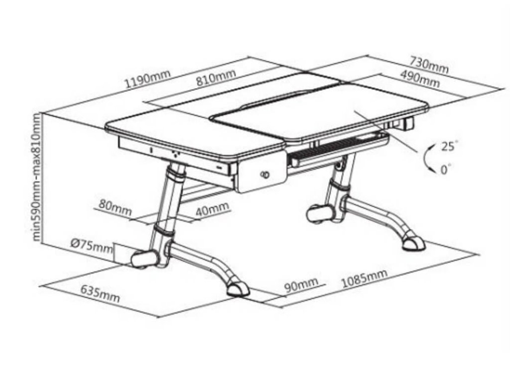 - Rozmery pracovnej dosky s možnosťou naklonenia: 81 x 49 cm