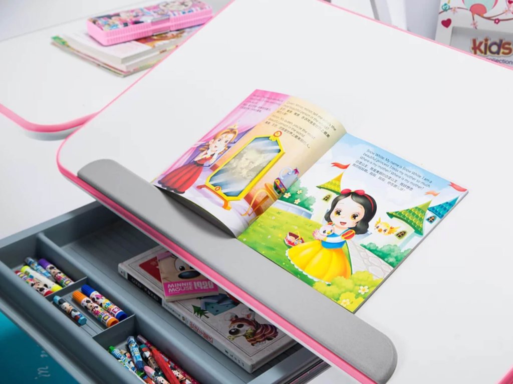 Navyše k tomuto rastúcemu písaciemu stolu so zásuvkou získate úplne zadarmo praktický organizér, náhradnú zásuvku a stoličku v modrej farbe.