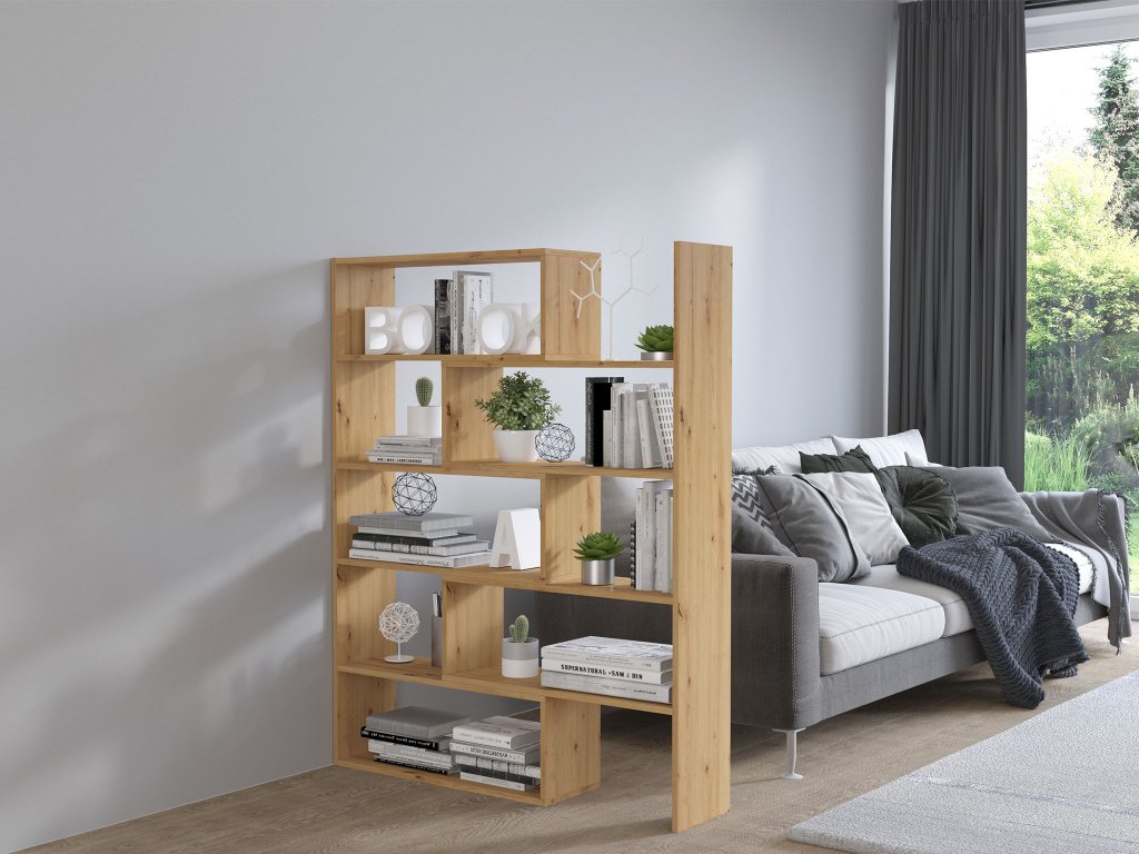Zháňate praktický a štýlový nábytok do vášho interiéru v jednom? Policový regál Karolo 01 je ideálnym pomocníkom na udržanie poriadku a moderným prvkom do každej miestnosti u vás doma. Využiť ho môžete napríklad v obývačke, spálni, kancelárii aj detskej izbe. Tento drevený regál ponúka všeobecné využitie svojho priestoru. Stačí doňho poukladať obľúbené knihy, dekorácie, fotografie, suveníry alebo aj hračky detí. Regál je zhotovený z kvalitnej laminovanej drevotriesky v dekore dub artisan. Je odolná a ľahko sa čistí. Spomínaný regál má niekoľko políc, pričom každá z nich unesie záťaž do 5 kg. Ak potrebujete viac úložného miesta, môžete si zakúpiť aj ďalšie regály rôznych veľkostí a vytvoriť si tak vlastnú zostavu, ale aj domácu knižnicu.