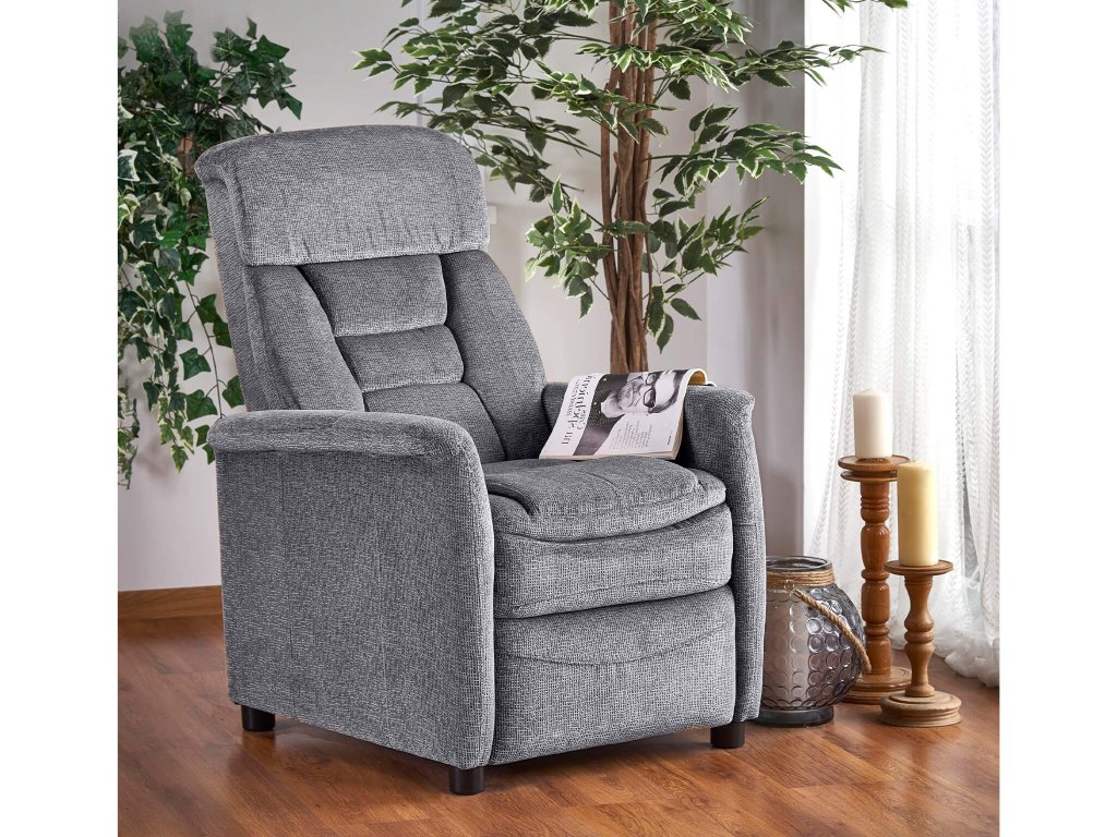 Sivé kvalitné rozkladacie kreslo Jordan pre váš dokonalý filmový zážitok či oddych s knihou. Nastavte si pohodlnú polohu a relaxujte po náročnom dni. Elegantné sivé prevedenie zapadne do každej obývacej izby. Vysoké operadlo a praktické podrúčky zaručia komfort. Polohovacie kreslo nepochybne patrí do každej domácnosti. Jedinečný tvar je doplnený elegantným prešívaním. Ide teda o kombináciu komfortu a funkčnosti. Kreslo obsahuje penu aj pružiny.