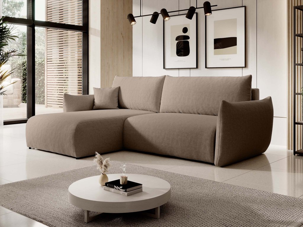 Pohovka Allora je postavená na pevnej konštrukcii z borovicového dreva, drevotriesky a preglejky, čo zaručuje jej stabilitu a dlhú životnosť. Výplň z PUR peny sa postará o maximálne pohodlie pri sedení aj spánku. Dekoratívne vankúše a decentné prešívanie dodávajú pohovke osobitý štýl, ktorý ľahko zapadne do každého interiéru. Vďaka možnosti výberu orientácie rohu sa Allora prispôsobí vašim priestorovým potrebám.