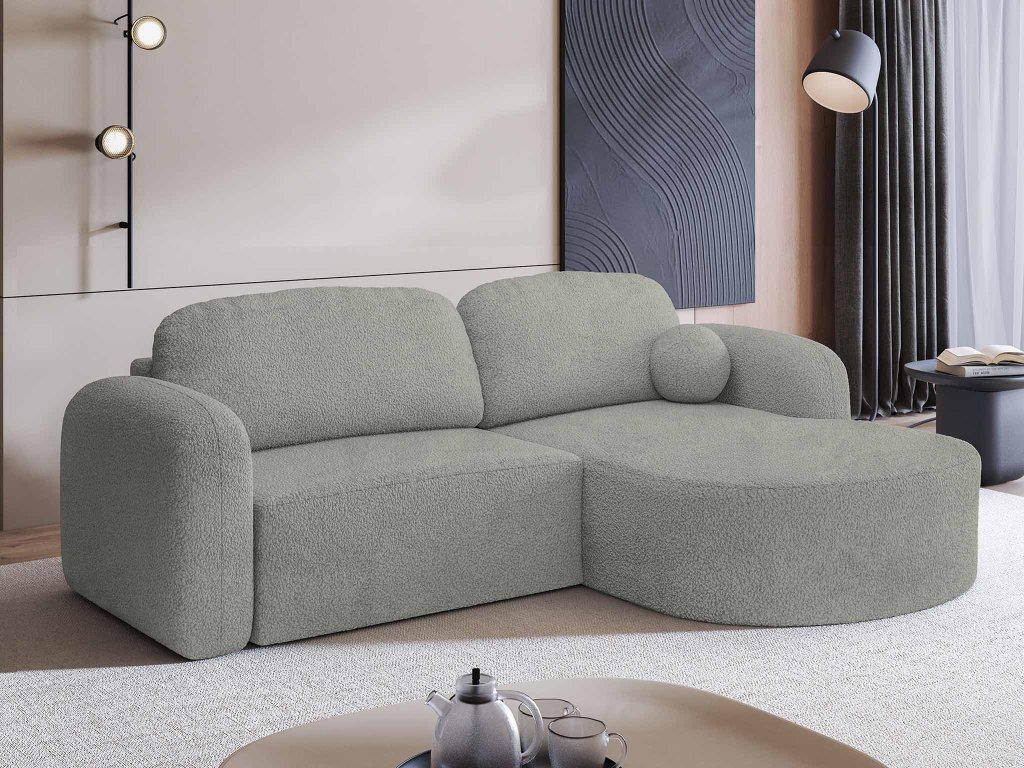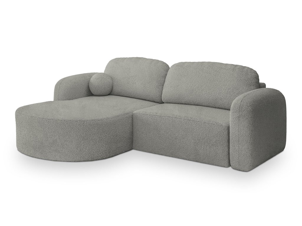 Hľadáte neutrálny základ, ktorý je zároveň útulný? Svetlosivá rozkladacia pohovka Amilia vnesie do Vášho interiéru sviežosť a pokoj. Najvýraznejší estetický prvok – zaoblená predĺžená leňoška – dodáva celku modernú jemnosť a vyzýva k odpočinku. Pohovka do obývačky je čalúnená tkaninou Quelle, ktorej bouclé štruktúra imitujúca baránka je nesmierne príjemná na dotyk a dodáva svetlosivej farbe vizuálnu hĺbku. Látka Quelle zo 100% polyesteru je ideálna pre aktívnu domácnosť, pretože je stálofarebná a vysoko odolná voči žmolkovaniu. Pevná konštrukcia sedadla s vlnovými pružinami a penou T30 zaručuje dlhodobú tvarovú stálosť.
