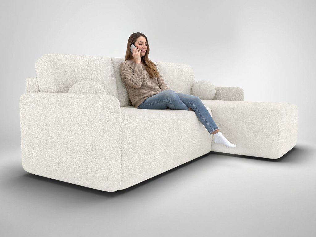 Rohová sedačka Blomera v jemnej smotanovej farbe spája moderný vzhľad s praktickými funkciami pre každodenné používanie. Čalúnenie z látky Abriamo vyniká príjemnou textúrou, odolnosťou voči opotrebovaniu a jednoduchou údržbou, vďaka čomu si sedačka zachováva elegantný vzhľad aj pri intenzívnom používaní. Táto sedačka je univerzálna – roh sedačky je možné zvoliť podľa potreby ako ľavostranný alebo pravostranný. Vankúše so zipsom uľahčujú čistenie a udržiavanie poriadku, zatiaľ čo pohodlné čalúnené operadlá podporujú zdravé a príjemné sedenie.