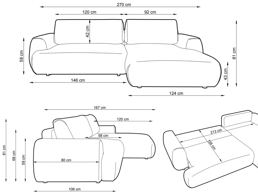 - Rozmer lôžka po rozložení: 213 x 126 cm