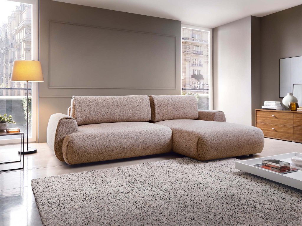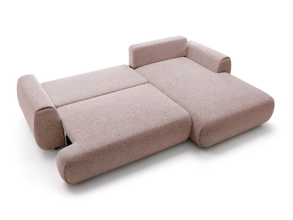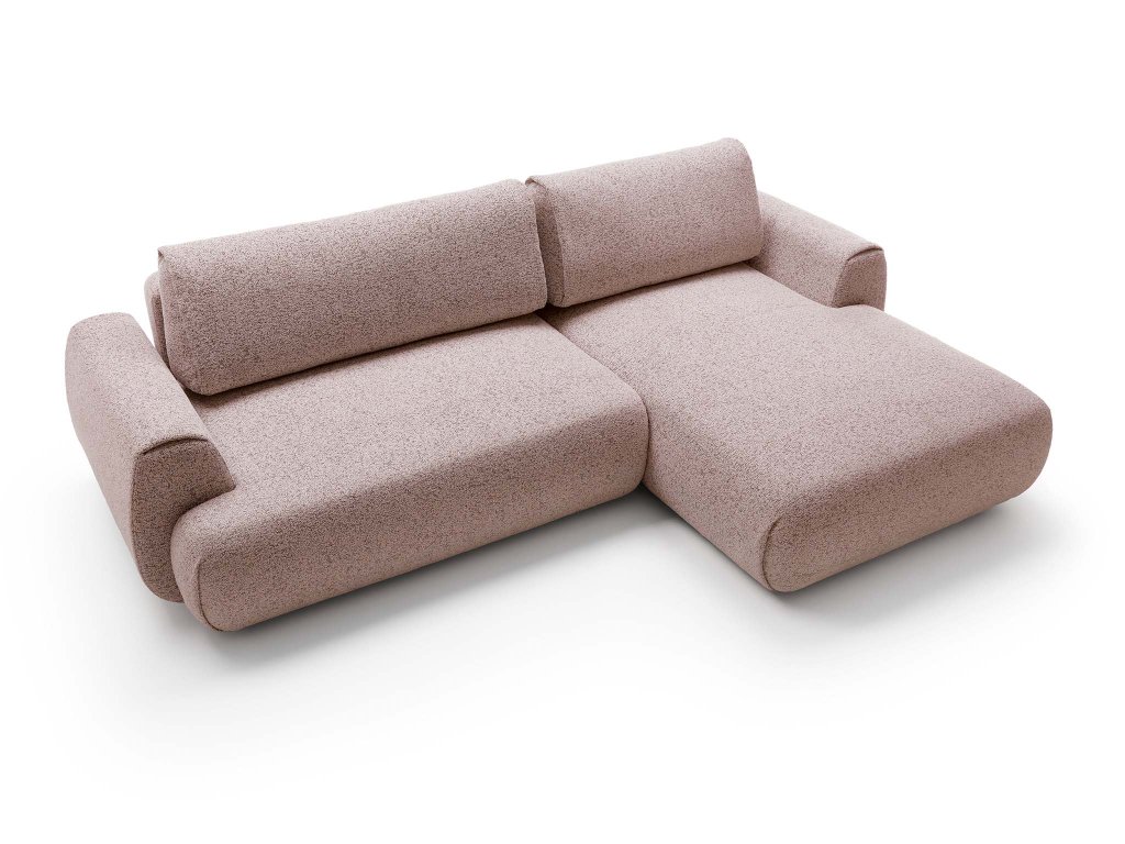 Ružová rohová sedačka Bocket je originálnym kúskom, ktorý dodá vašej obývačke sviežosť a osobitý šarm. Svetlý pastelový odtieň pôsobí romanticky a moderne zároveň, vďaka čomu je vhodný do ženských interiérov, ale aj ako odvážny dizajnový prvok. Čalúnenie z melanžovej látky je nielen vizuálne atraktívne, ale aj odolné proti poškodeniu či oderu. Pevná konštrukcia z dreva zaručuje stabilitu, čo robí zo sedačky spoľahlivý základ pre každodenné používanie.