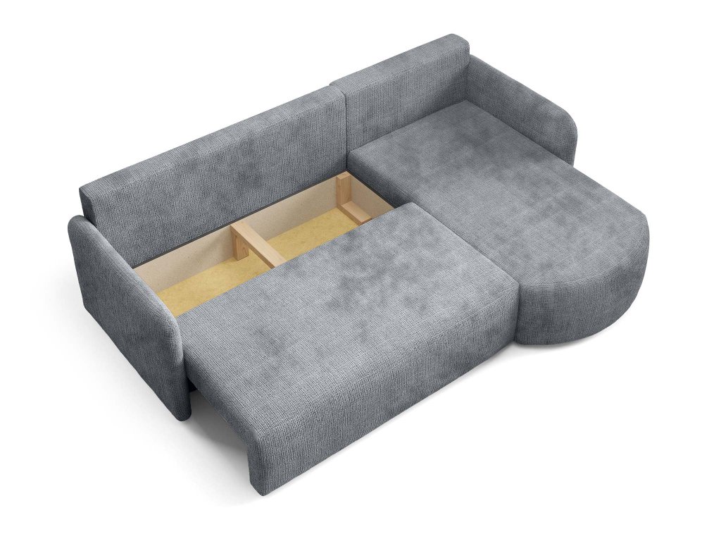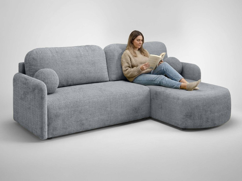 Rozkladacia pohovka Bonoa je ideálnym riešením pre menšie interiéry, kde každý centimeter hrá rolu. Vďaka zabudovanému úložnému priestoru ľahko usporiadate deky, vankúše alebo sezónne doplnky a udržíte domácnosť v poriadku. Funkcia rozkladania umožňuje rýchlu premenou sedačky na komfortnú plochu na spanie. Univerzálny roh sa jednoducho prispôsobí konkrétnemu priestoru, takže zapadne takmer do každej izby.