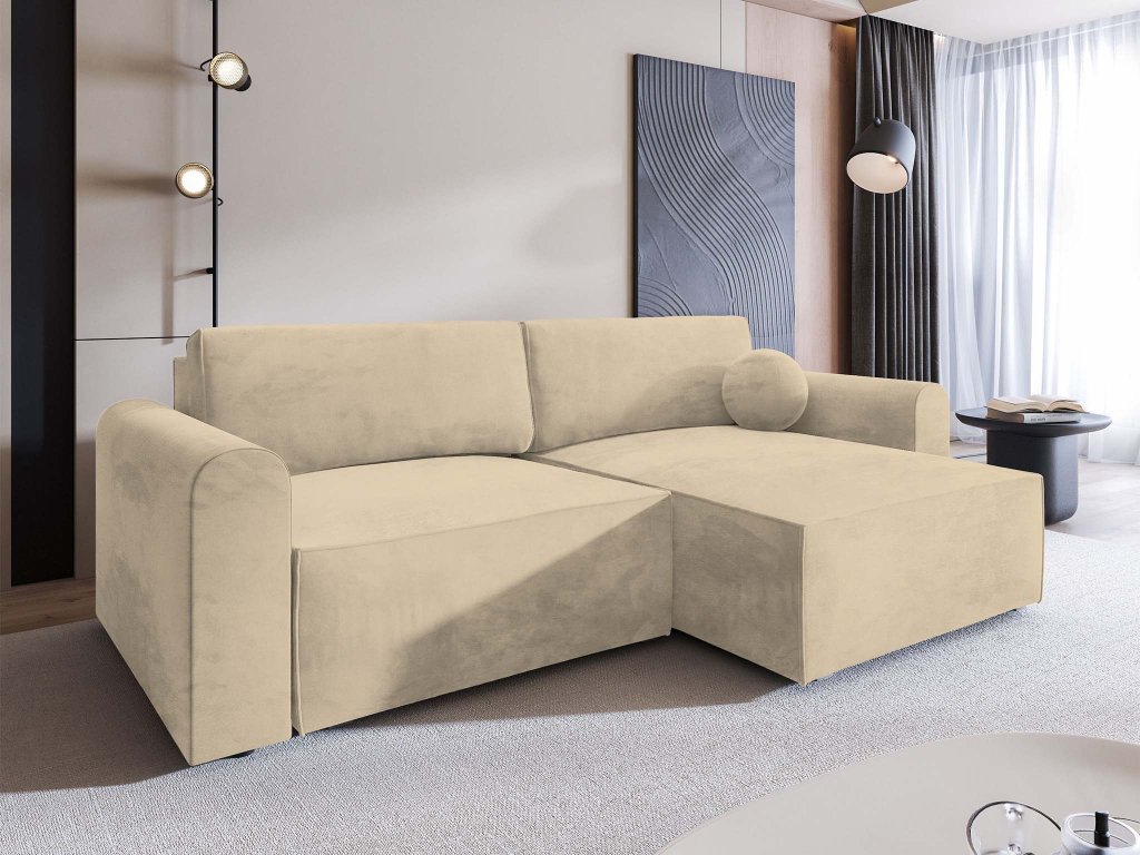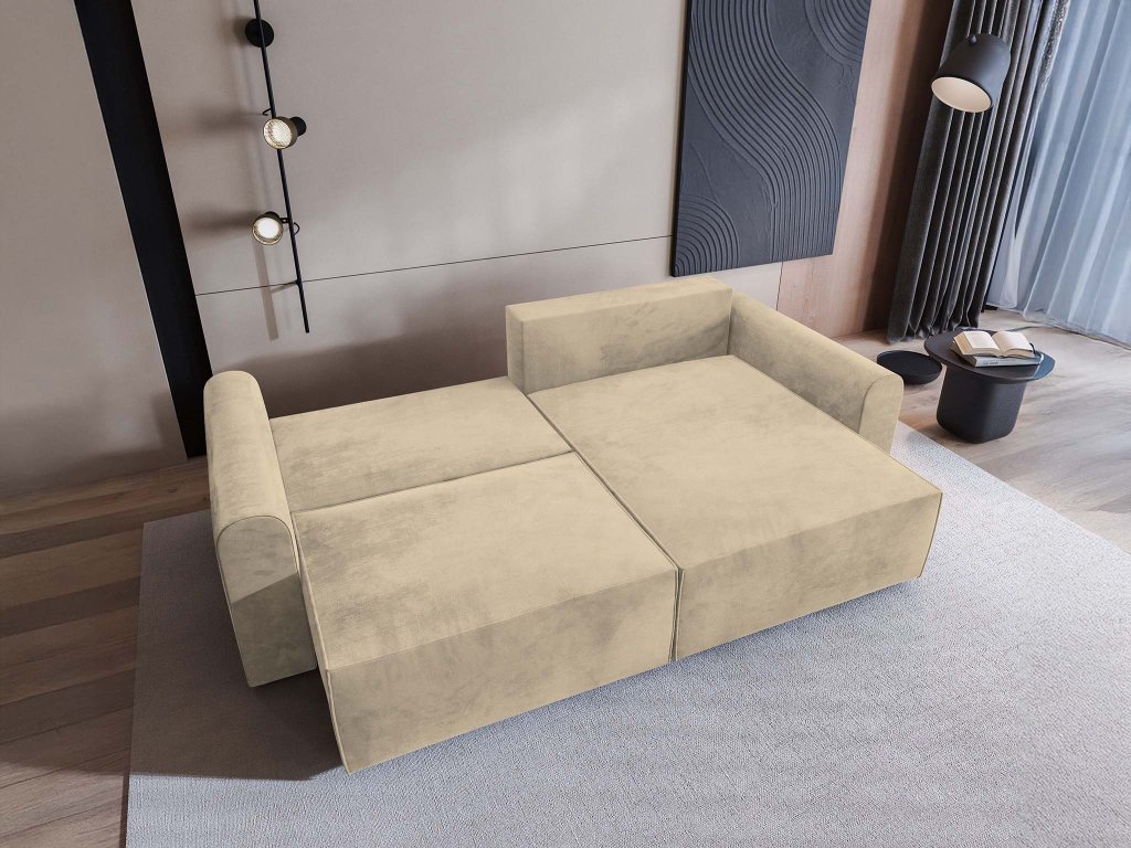 Rohová pohovka Fiano M v krémovej farbe je stelesnením štýlu, pohodlia a moderného dizajnu. Bez problémov sa začlení do akéhokoľvek interiéru. Je potiahnutá luxusnou zamatovou látkou Monolith, ktorá zaujme nielen svojou jemnosťou a elegantným leskom, ale je aj mimoriadne praktická. Vďaka hydrofóbnemu povlaku je látka odolnejšia voči tekutinám a jednoducho sa udržiava v čistote, čo ocenia najmä rodiny s deťmi alebo domácimi zvieratami. Jednoduchý, geometrický tvar dopĺňajú zaoblené bočné strany, ktoré slúžia ako pohodlné podrúčky a dodávajú modelu elegantný vzhľad. Komfort sedenia zaručuje výplň z kvalitnej peny a pružín, ktorá sa prispôsobuje telu a dlhodobo odoláva deformácii.