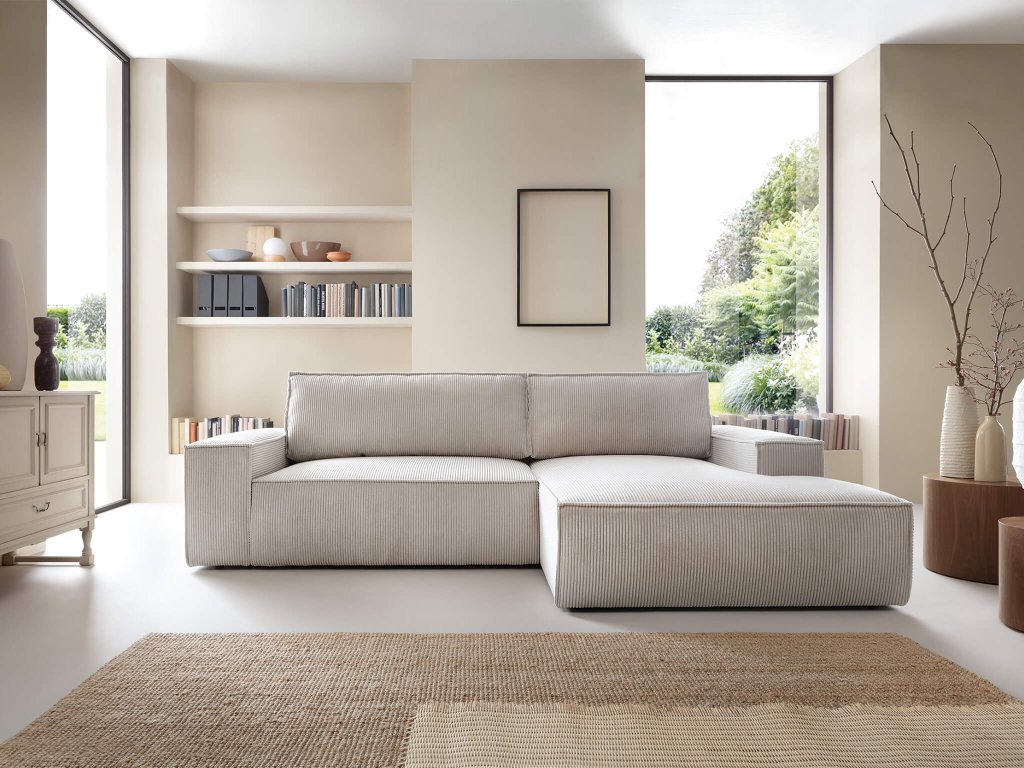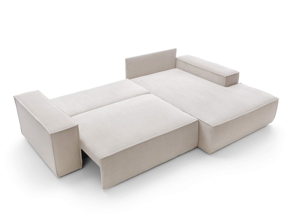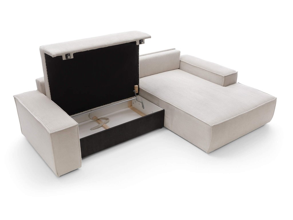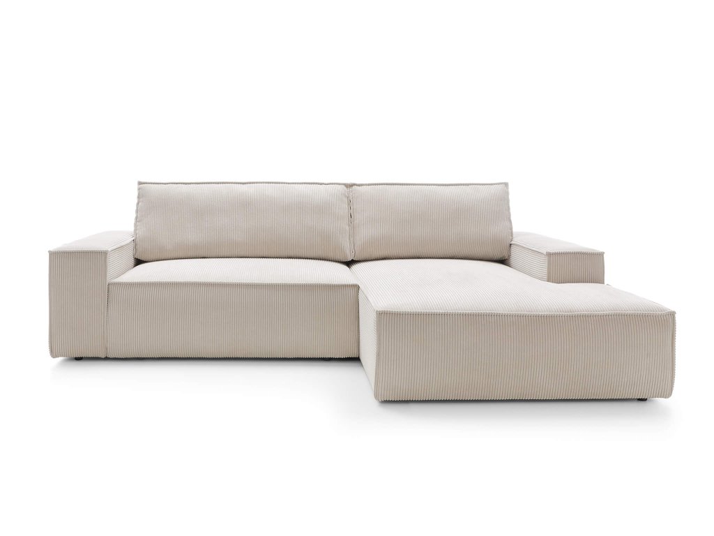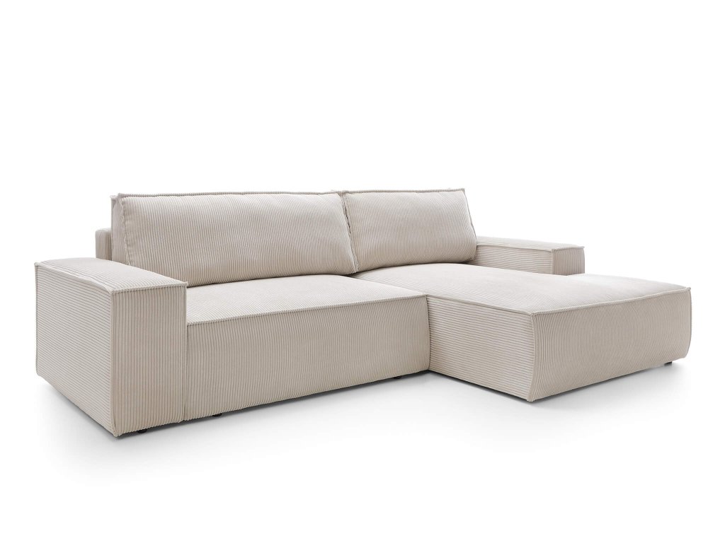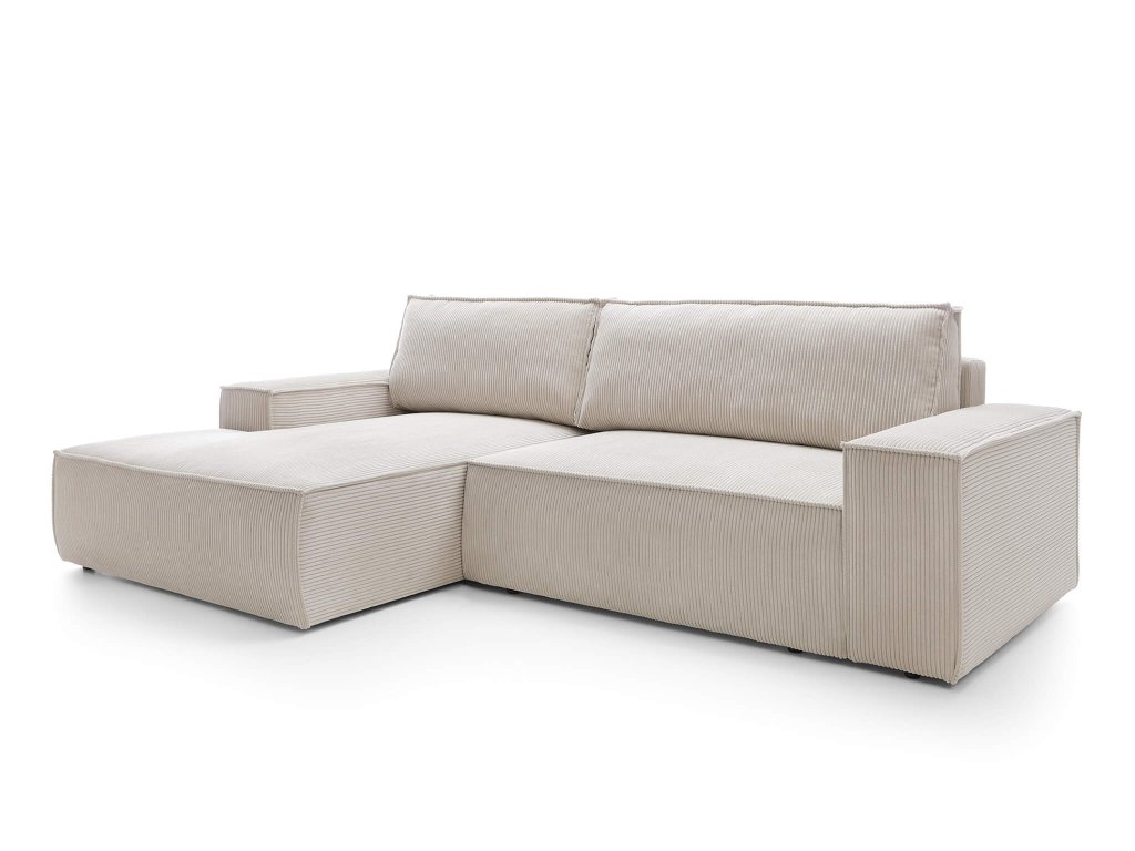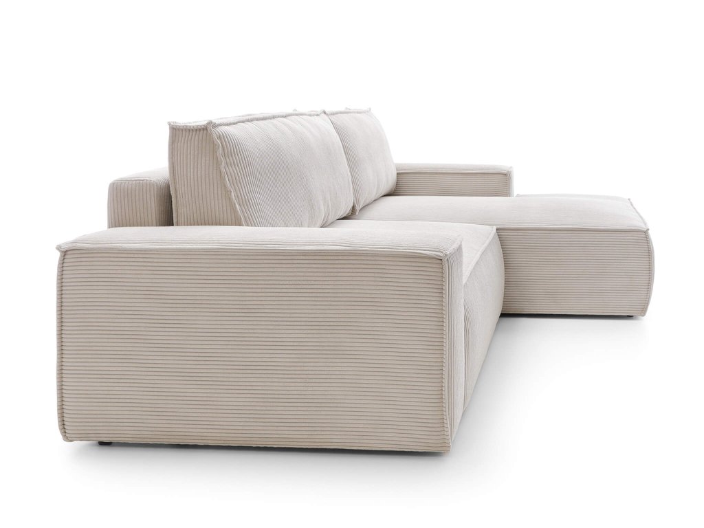 Moderná elegancia spojená s neprekonateľným komfortom - to je rohová sedačka Fiord. Svojím nádherným dizajnom, výborným pohodlím a praktickými funkciami ponúka Fiord nielen miesto na posedenie, ale aj relaxáciu a úložný priestor pre vaše potreby. Béžová farba a jemná menčestrová látka Poso prispievajú k neutrálnemu a štýlovému vzhľadu, ktorý sa hodí do každého interiéru. Fiord nie je len krásna, ale aj neuveriteľne pohodlná. Ideálnu podporu a komfort získate práve vďaka dvom odnímateľným vankúšom a kombinácii vlnitých pružín Faliste a PUR peny v pohovke. Tento kúsok je viac ako len sedačka - je to aj skvelé lôžko pre návštevu. Jeho rozkladacia funkcia je jednoduchá na použitie, čo z neho robí ideálnu voľbu pre domácnosti s občasnými hosťami. Pohovka je takisto vybavená praktickým úložným priestorom, kde môžete uchovávať napríklad deky či periny. Fiord ponúkame vo verziách s ľavým alebo pravým rohom, čo vám umožňuje prispôsobiť ho vašim potrebám a priestoru vo vašej izbe. Sedačka Fiord je spojením moderného dizajnu, pohodlia a praktických vlastností. Zadná časť sedačky je v rovnakej menčestrovej látke.