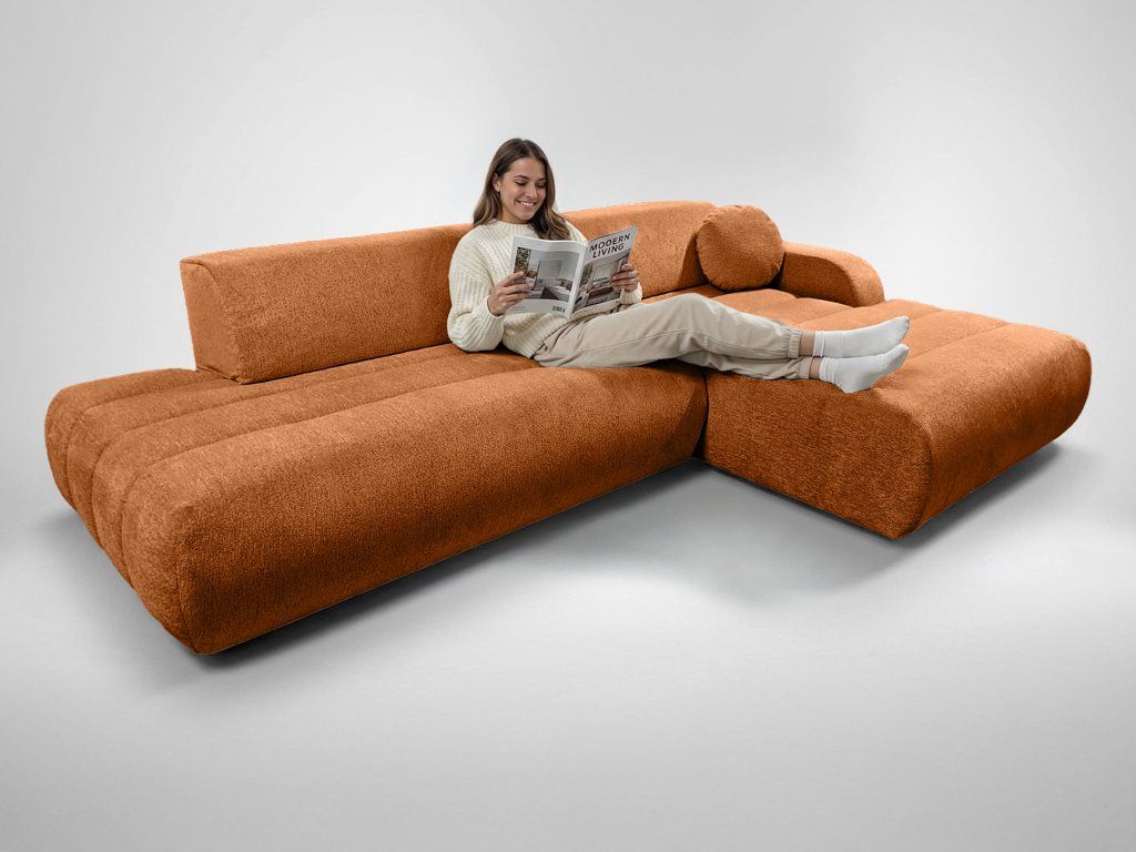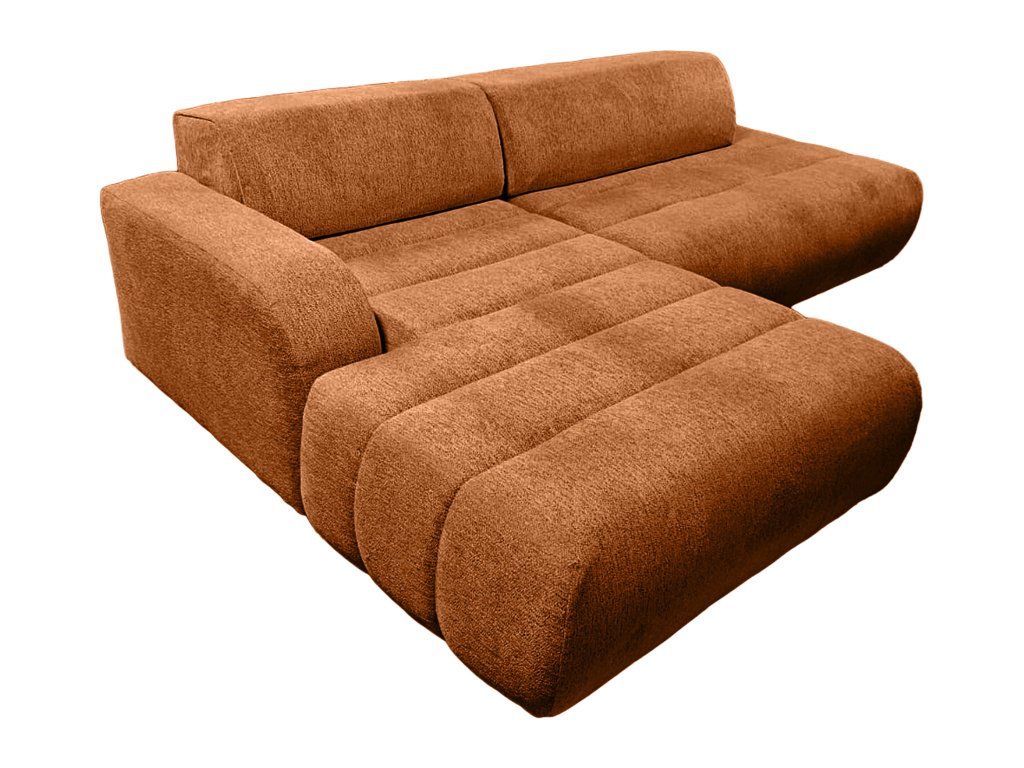 Tehlová rohová sedačka Limo je postavená na pevných základoch z masívneho borovicového dreva a výberových materiálov, ktoré sú prísľubom mimoriadnej odolnosti. Komfortné sedenie zabezpečuje inovatívna PUR pena T-3040, známa svojou schopnosťou rýchlo sa vrátiť do pôvodného stavu, zatiaľ čo nadýchané operadlá s výplňou T-1620 vás príjemne obklopia pocitom mäkkosti. Povrchová úprava v podobe tkaniny s jemnou textúrou dodáva nábytku hĺbku a dotyk luxusu, ktorý pohladí nielen oči, ale aj ruku. Celkový vizuál harmonicky dopĺňajú decentné čierne nožičky, ktoré podčiarkujú stabilitu a moderný, vizuálne odľahčený charakter sedačky.