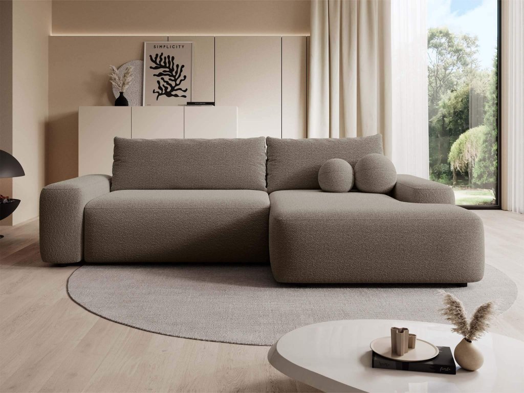 Rohová rozkladacia sedačka Loop je perfektnou voľbou pre moderné interiéry, kde sa snúbi štýl s funkčnosťou. Jedná sa o celočalúnenú sedačku, ktorej poťah je z látky LAMBI, ktorá je veľmi jemná a príjemná na dotyk. Pohovka zaručuje pohodlie a eleganciu. Hnedá farba sedačky je unikátna, vďaka čomu bude určite pútať pozornosť vo vašej obývačke. Sedačka Loop však nie je len esteticky krásna. Je navrhnutá tak, aby poskytovala maximálny komfort pri sledovaní televízie alebo relaxovaní s priateľmi či rodinou. Vďaka odnímateľným vankúšom a možnosti rozloženia sa rýchlo premení na pohodlné lôžko pre dvoch, čo oceníte hlavne pri nečakaných nočných návštevách. Jej celočalúnený dizajn zaisťuje, že bude vyzerať skvelo z akéhokoľvek uhla, čo vám umožní ju umiestniť kdekoľvek v miestnosti. Súčasťou sedačky sú aj dva štýlové guľaté vankúše, ktoré môžete vidieť na fotke.