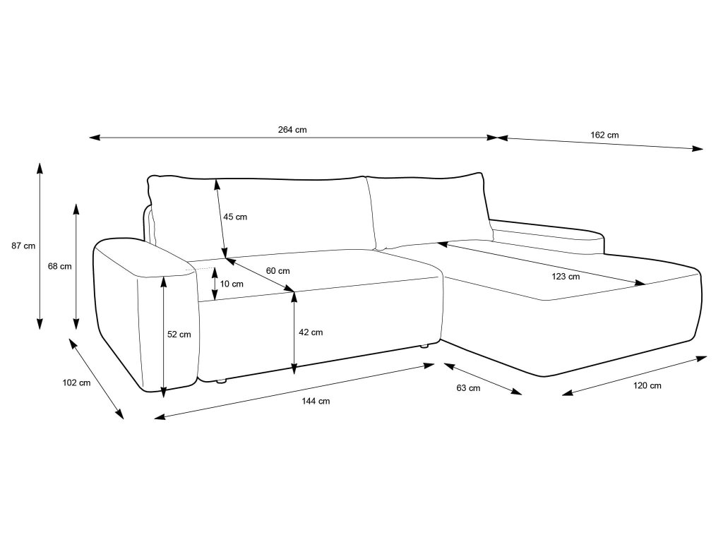 Sedačka je dostupná v pravej aj ľavej orientácii. Pred kúpou si skontrolujte, či máte vybranú správnu orientáciu. Upozorňujeme, že farby sa môžu mierne líšiť v závislosti od nastavenia obrazovky.