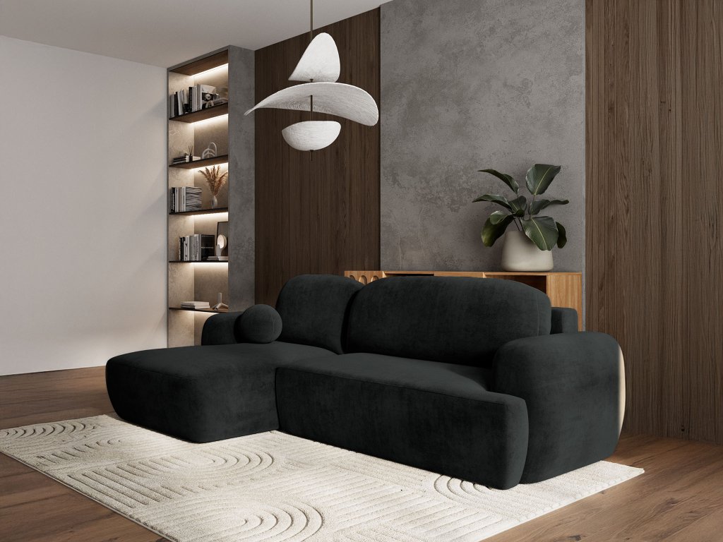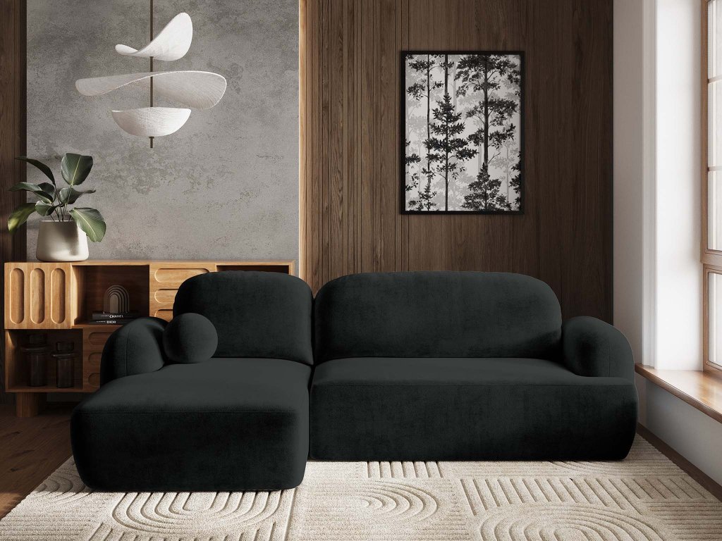 Rohová sedačka Modenza v luxusnej čiernej farbe prináša do interiéru nadčasový štýl. Jej tmavý odtieň pôsobí výrazne, no zároveň decentne, a ľahko sa kombinuje s akýmkoľvek nábytkom. Poťahová látka Kronos z mäkkého velúru dodáva sedačke jemnosť a noblesu. Jej hladký, zamatový povrch pôsobí exkluzívne a príjemne na dotyk.