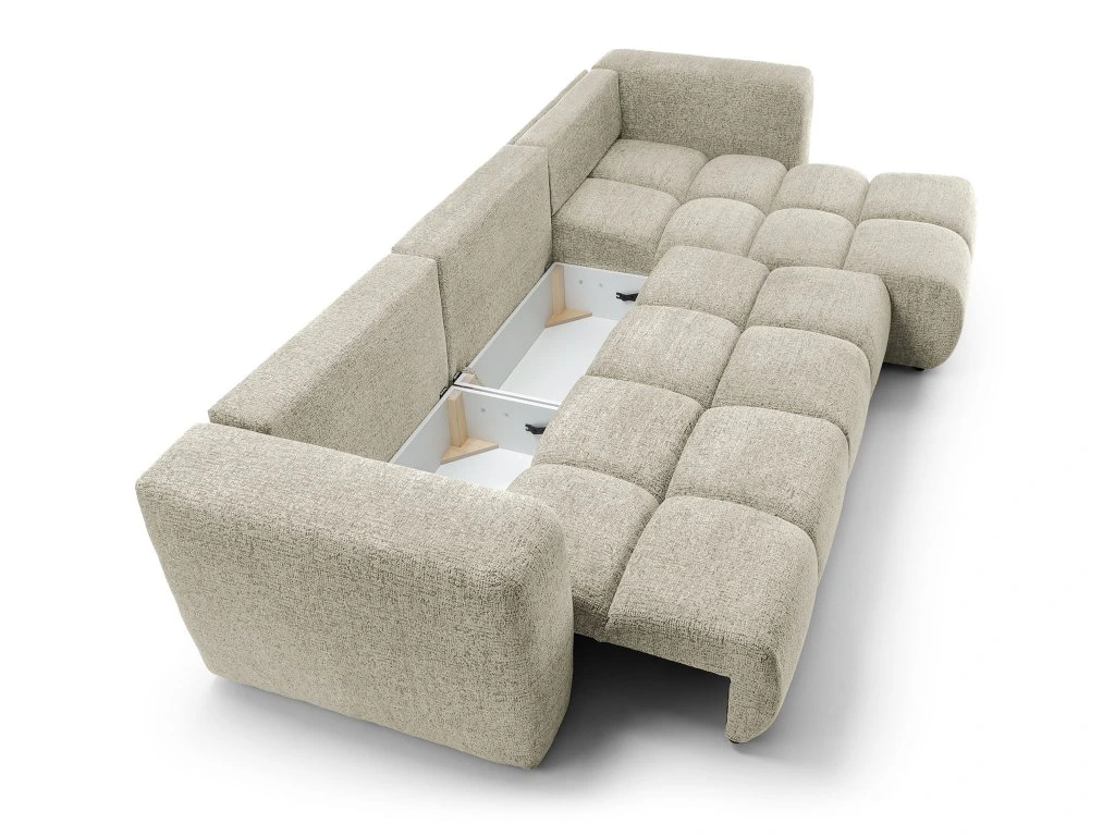 Sedačka Modi III nie je len o estetike, ale predovšetkým o inteligentných riešeniach, ktoré vám uľahčia život. Vďaka integrovanému automatickému rozkladaciemu systému DL ju v priebehu okamihu premeníte na veľkorysé a mimoriadne pohodlné lôžko s plochou na spanie 270 × 144 cm. Či už ide o filmový maratón s rodinou alebo nečakané prespanie návštevy, tento priestor poskytne komfort porovnateľný s klasickou posteľou. Praktickú stránku dopĺňa šikovne skrytý úložný priestor s rozmermi 87 × 61 × 19,5 cm, ktorý je ideálnym miestom na diskrétne uloženie posteľnej bielizne, diek či vankúšov, vďaka čomu udržíte v obývačke dokonalý poriadok.