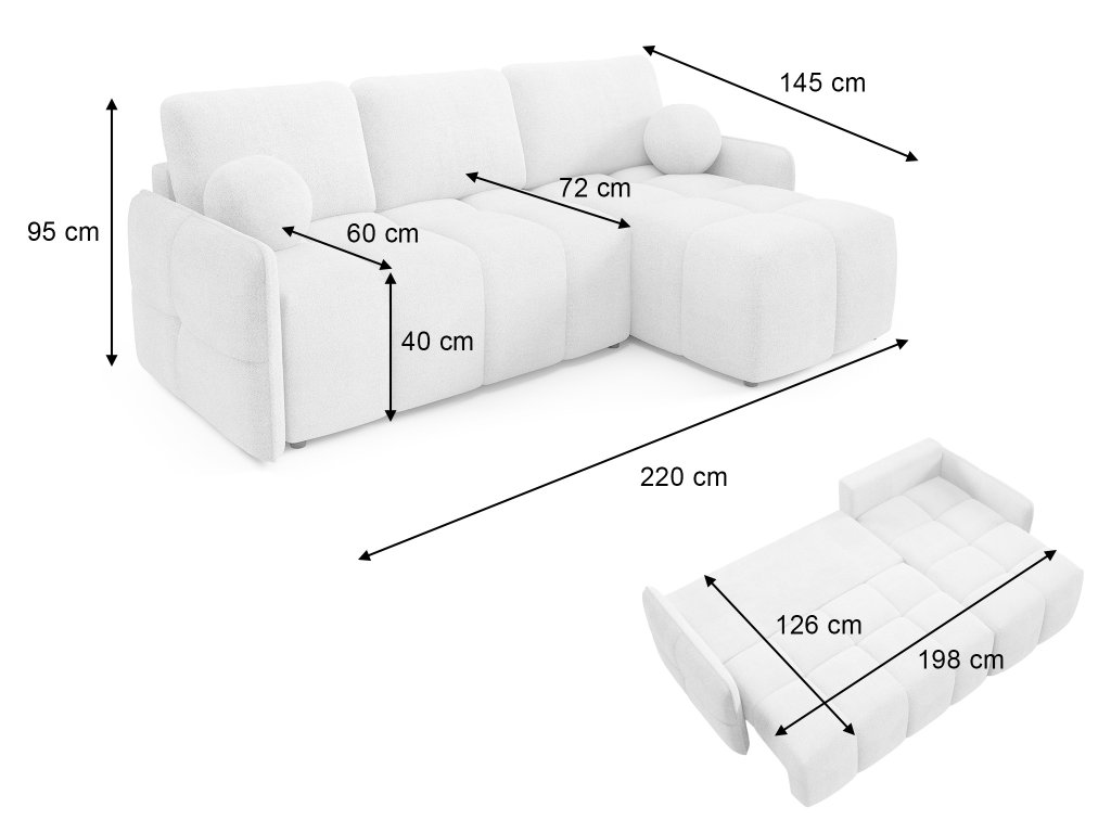 - Rozmer lôžka po rozložení: 198 x 126 cm