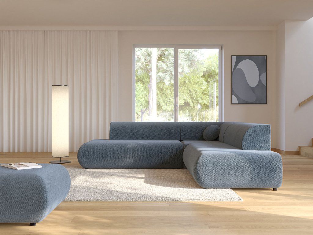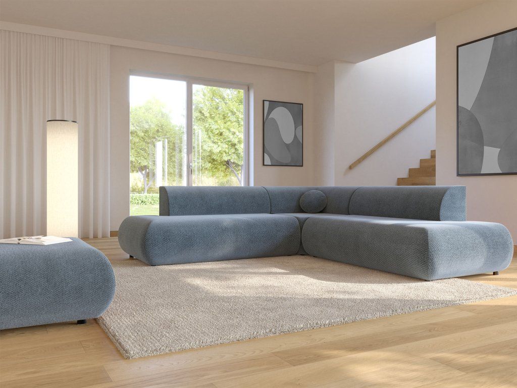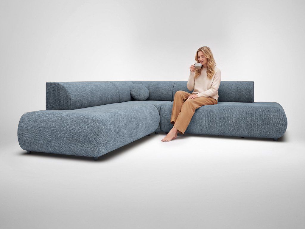Rohová sedačka Puente II v modrom prevedení prináša do interiéru sviežosť, hĺbku a nadčasový štýl s moderným charakterom. Táto dizajnová rozkladacia sedačka s úložným priestorom spája estetiku a praktickosť, ktoré ocení každodenné používanie. Jemne zaoblené línie, čisté tvary a výrazný odtieň vytvárajú harmonický celok, ktorý pôsobí elegantne a zároveň útulne. Modrá farba dodáva priestoru osobitosť a ľahko sa kombinuje s neutrálnymi aj kontrastnými doplnkami. Vďaka rozkladacej funkcii ponúka pohodlné lôžko a zároveň dostatok úložného priestoru, čím sa stáva ideálnym riešením pre funkčný a štýlový domov.