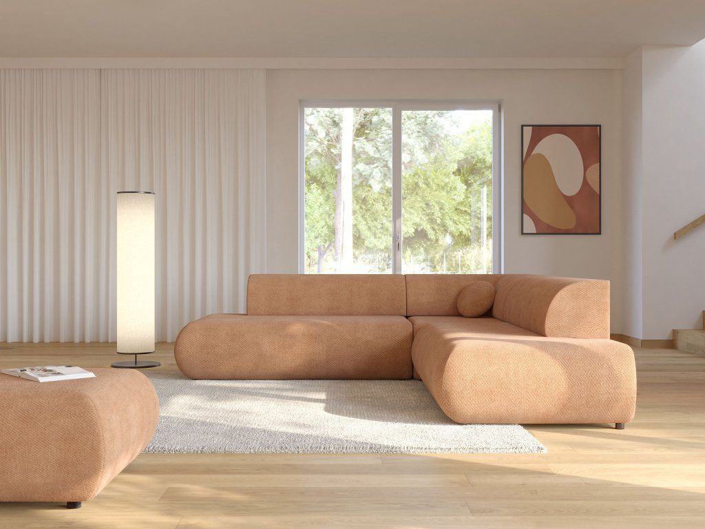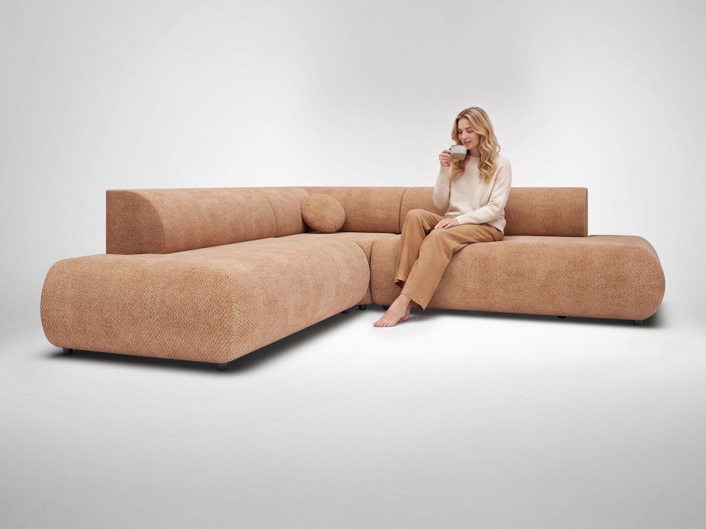 Dizajnová rohová rozkladacia sedačka Puente II – tehlová harmónia pre moderný interiér