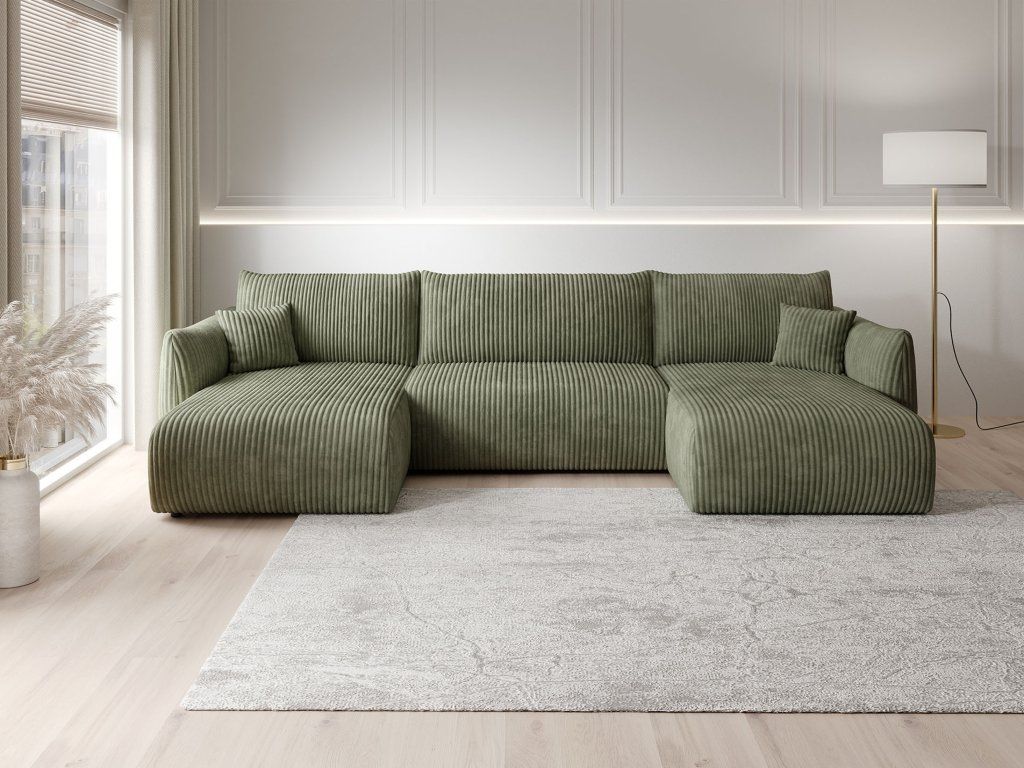Olivová rohová sedačka Allora U – moderný komfort a praktické využitie v jednom