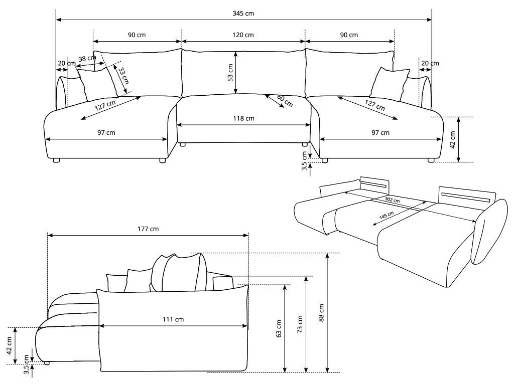 - Rozmer (šxvxh): 345 x 88 x 177 cm