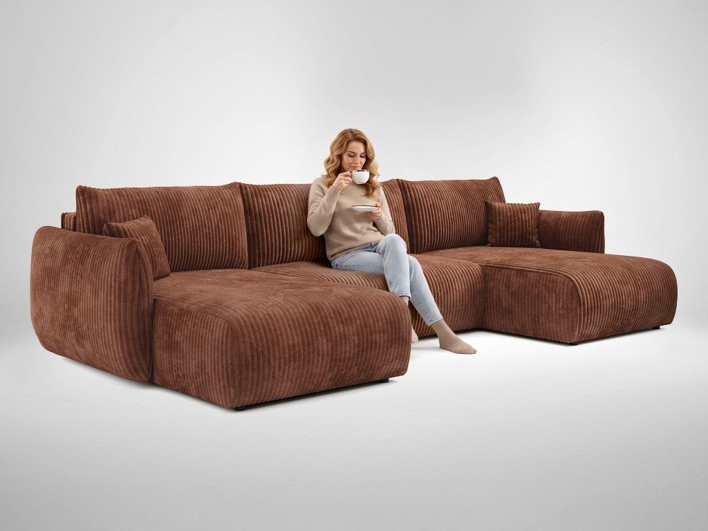 Tehlová rohová sedačka Allora U – spojenie moderného dizajnu, priestoru a pohodlia