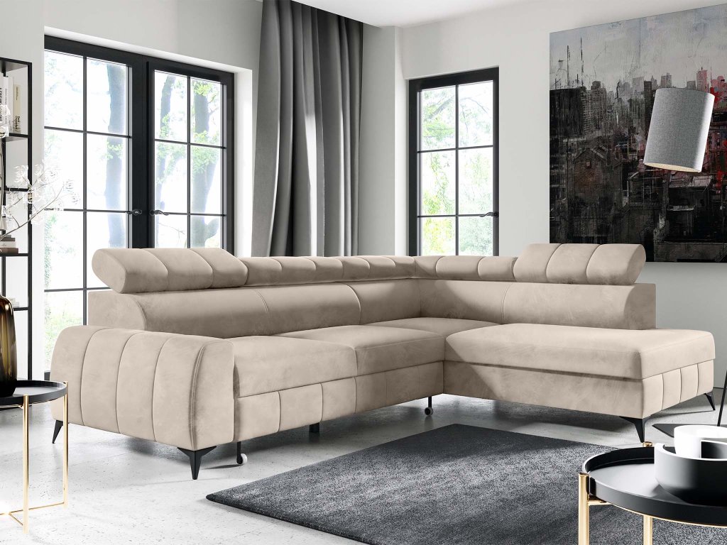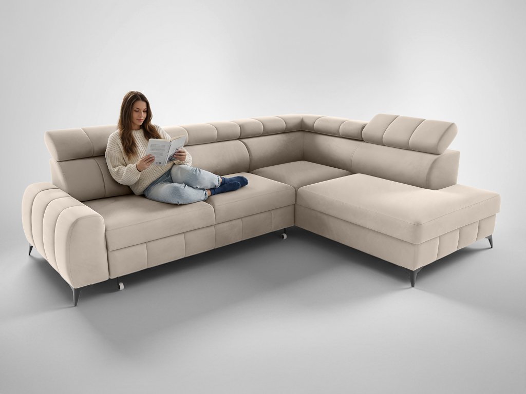 Rohová rozkladacia sedačka s úložným priestorom London - béžová