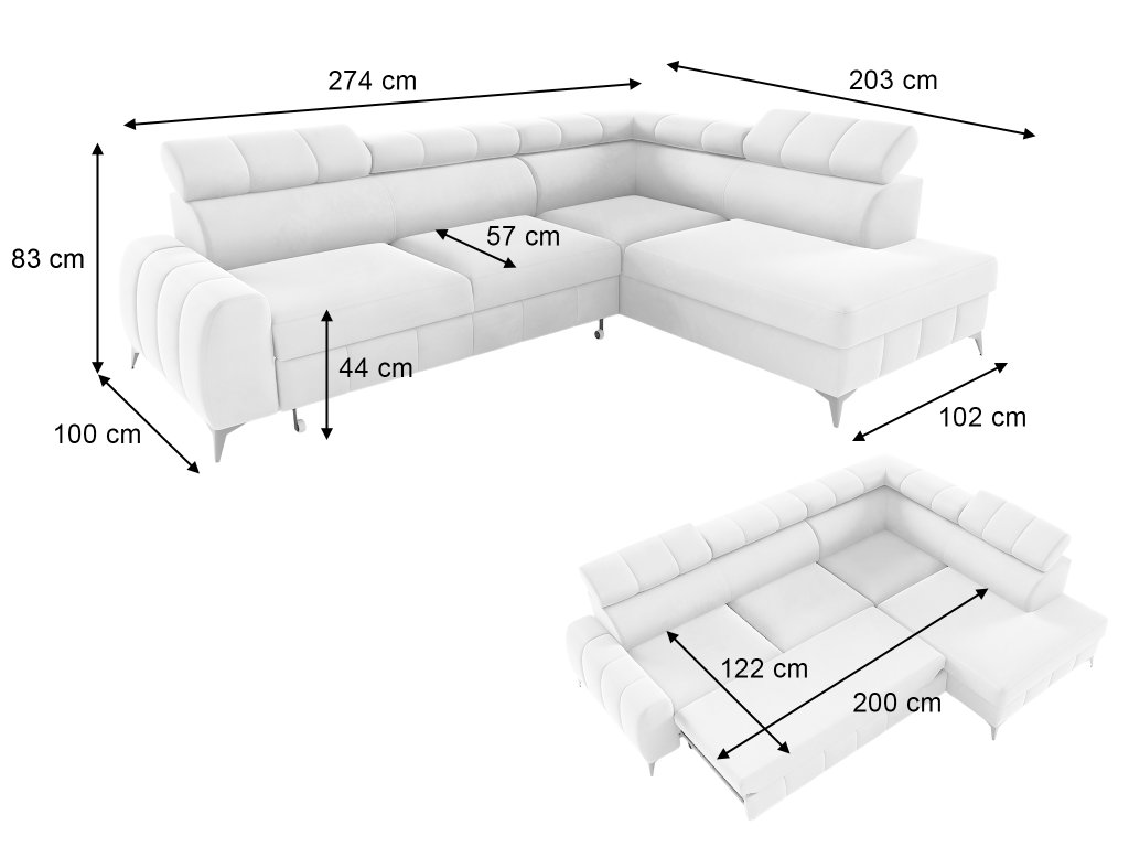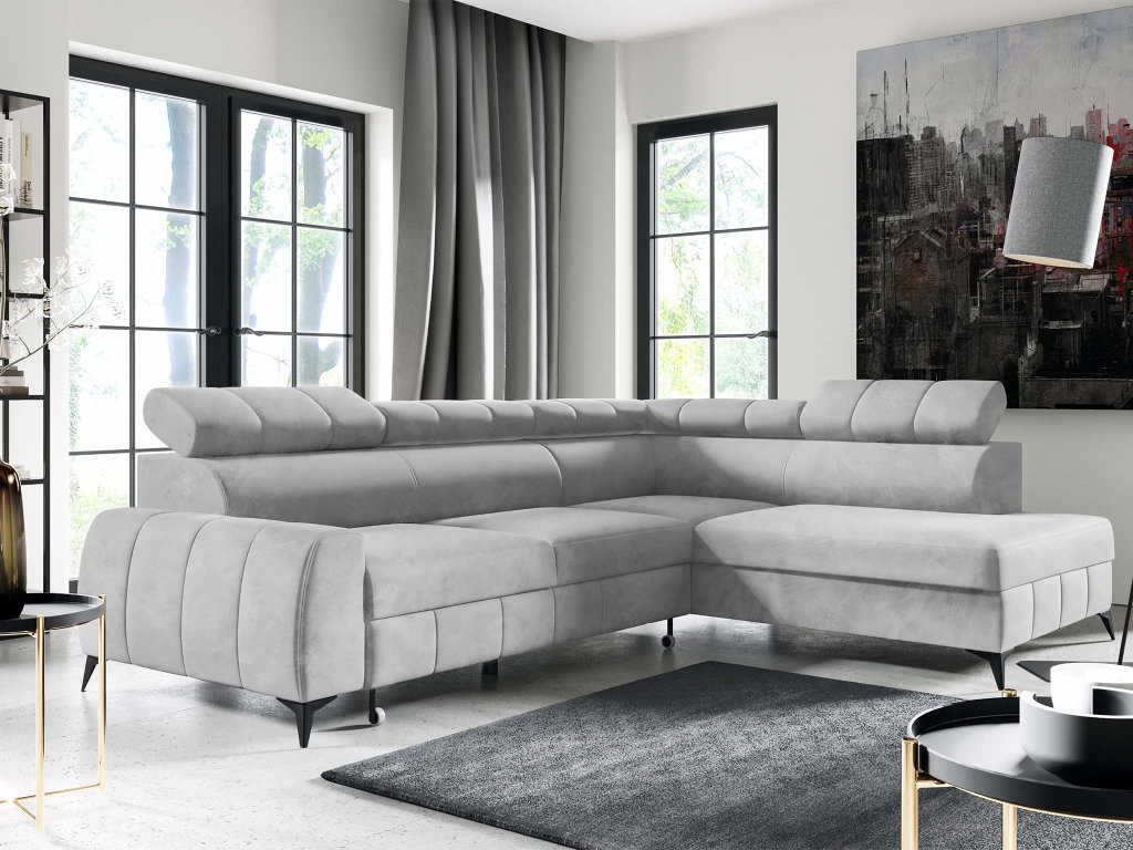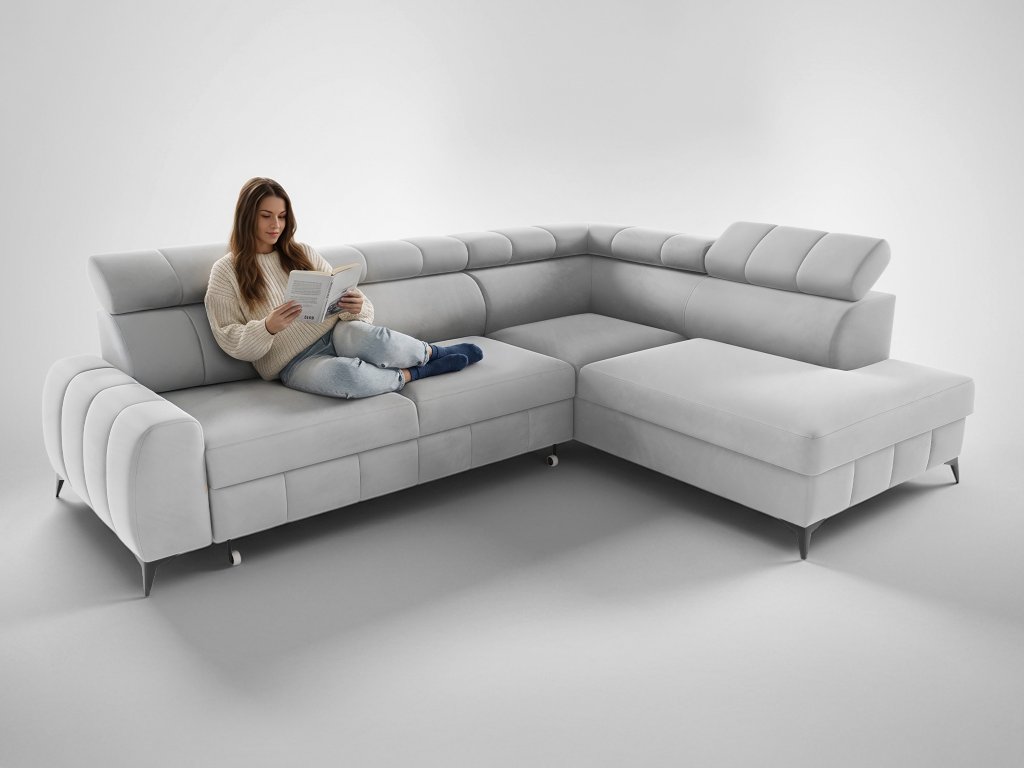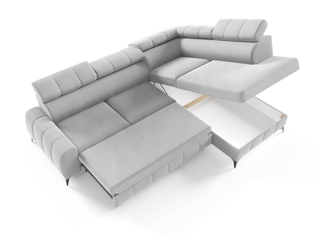 Rohová rozkladacia sedačka s úložným priestorom London - svetlosivá