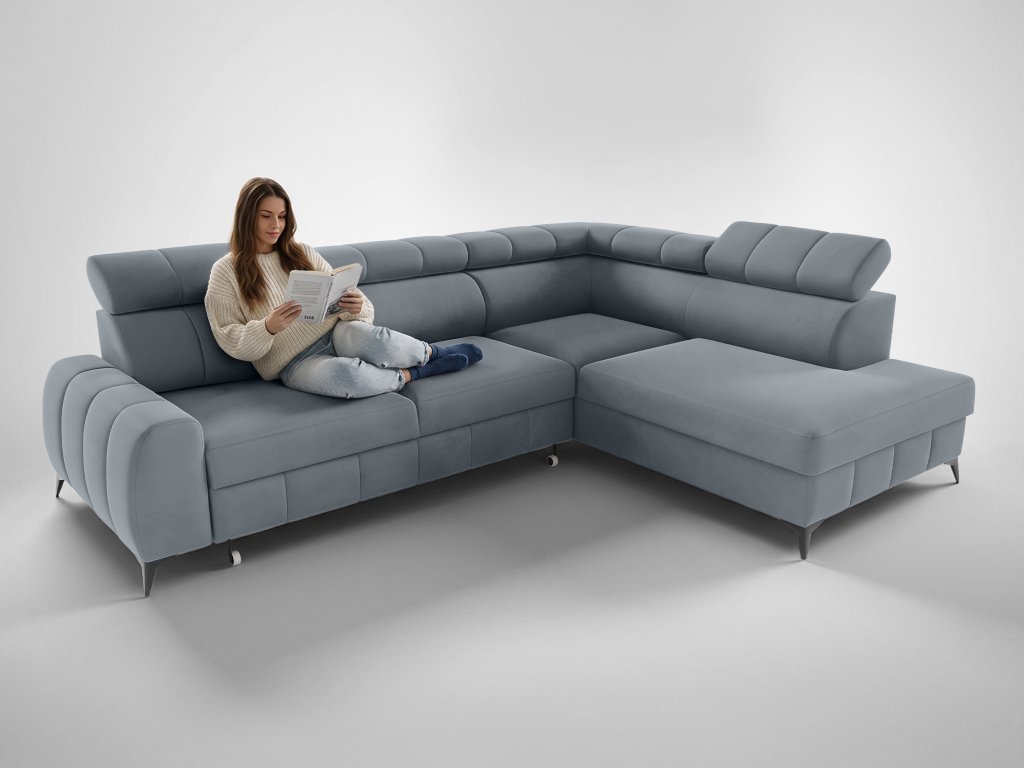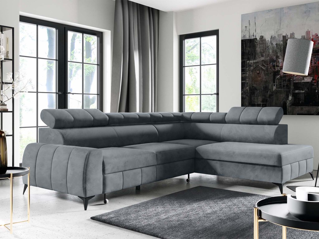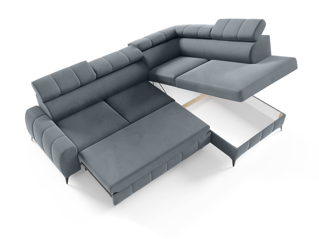 Rohová rozkladacia sedačka s úložným priestorom London - tmavosivá