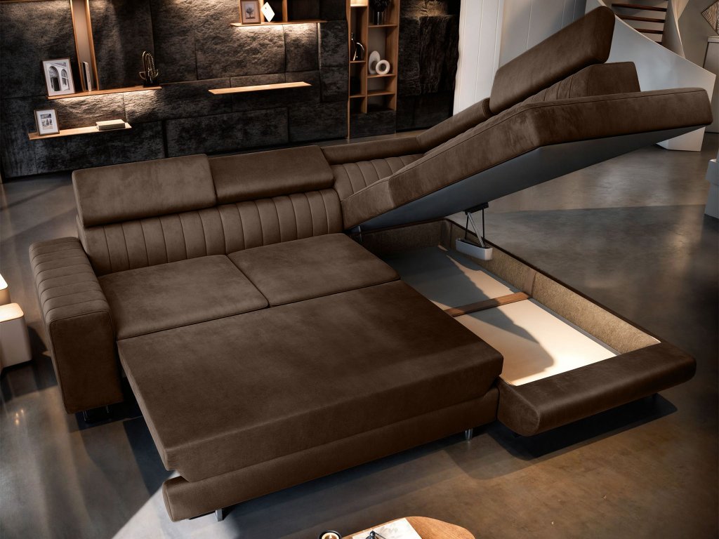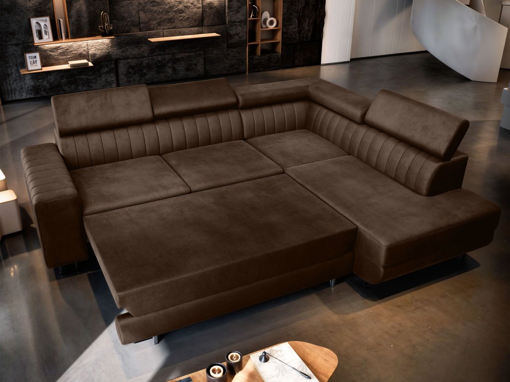 Rohová rozkladacia sedačka s úložným priestorom Nola - čokoládová