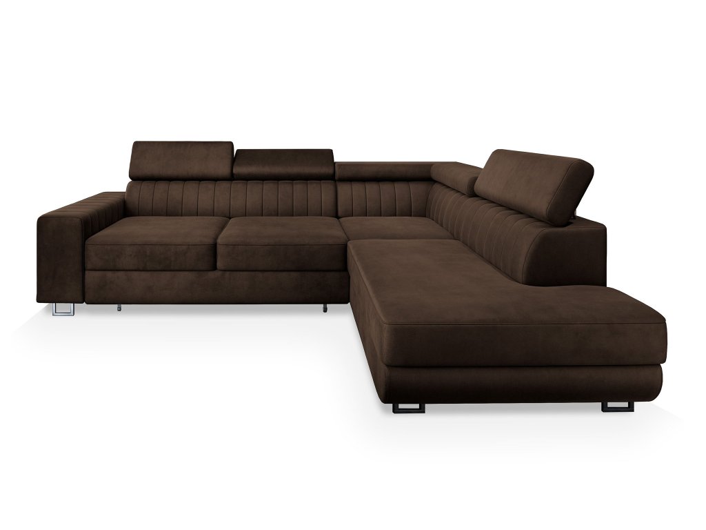 Zariaďte si obývačku s nábytkom, ktorý kombinuje špičkový dizajn a maximálny relax. Rohová pohovka Nola v sýtej čokoládovej farbe s modernými kovovými nohami predstavuje elegantný kúsok, ktorý si získa pozornosť. Pohovka je navrhnutá ako voľne stojaci kus, čo vám dáva úplnú slobodu pri jej umiestnení kdekoľvek v priestore. Užite si dokonalé pohodlie vďaka premysleným detailom, ako sú nastaviteľné opierky hlavy a komfortná lakťová opierka. Pevná konštrukcia z masívneho dreva a nábytkovej dosky v kombinácii s kvalitnými vlnovými pružinami zaisťuje mimoriadnu odolnosť, čo zaručuje roky pohodlného používania.
