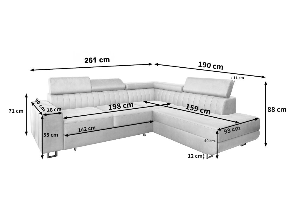 Upozorňujeme však, že dĺžka sa môže líšiť o ±2 cm v dôsledku charakteru čalúneného nábytku.